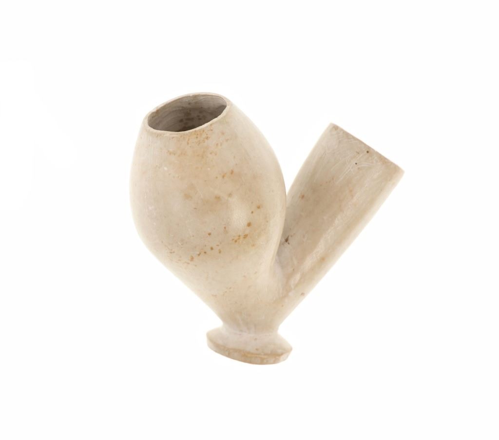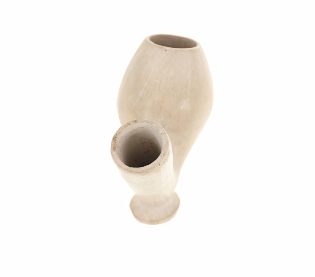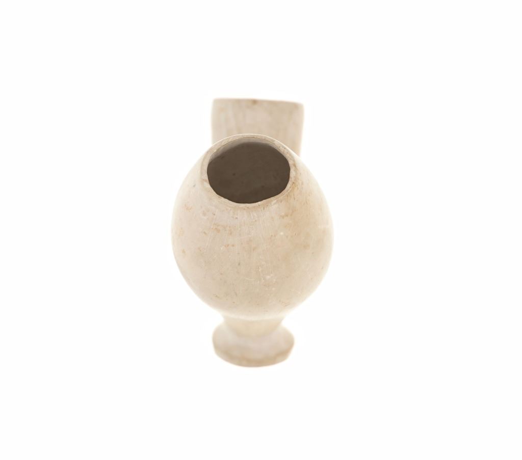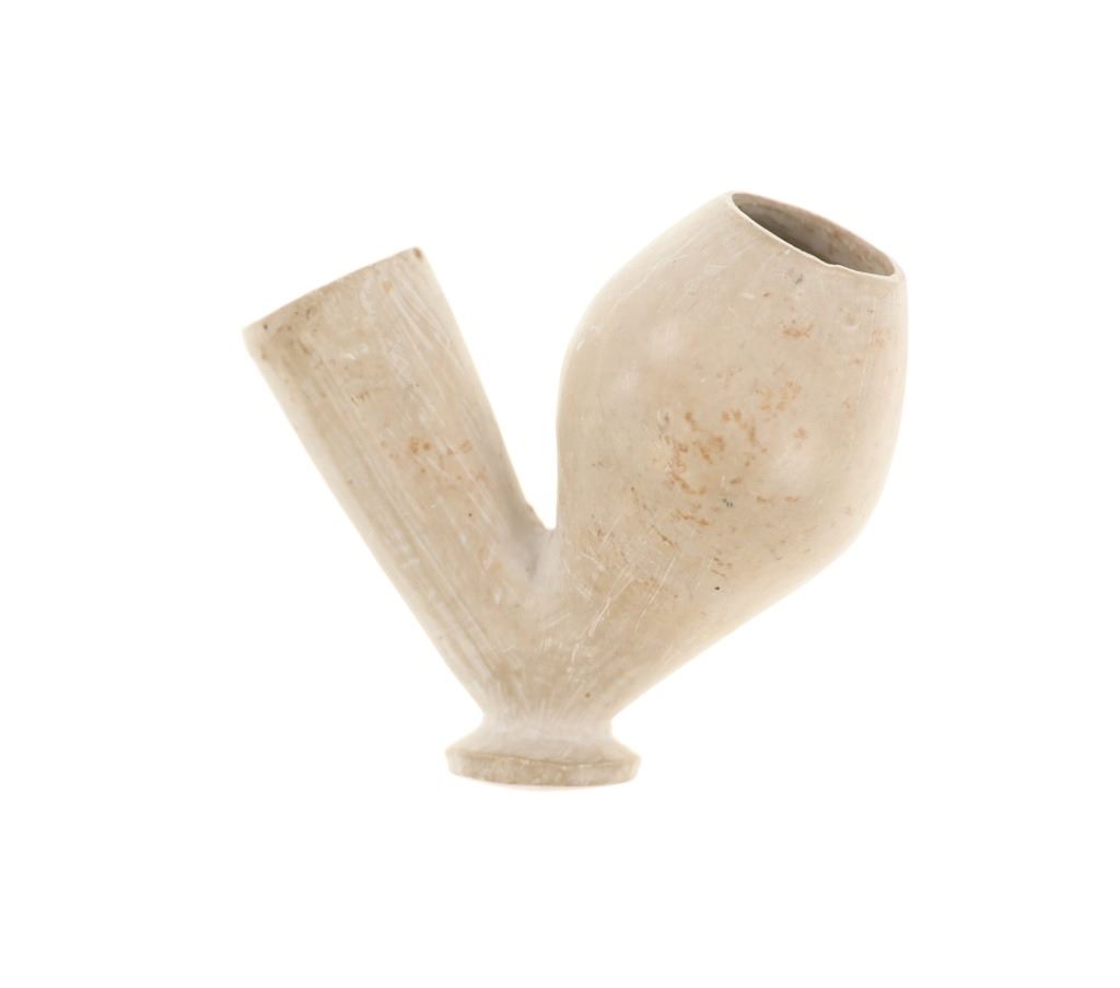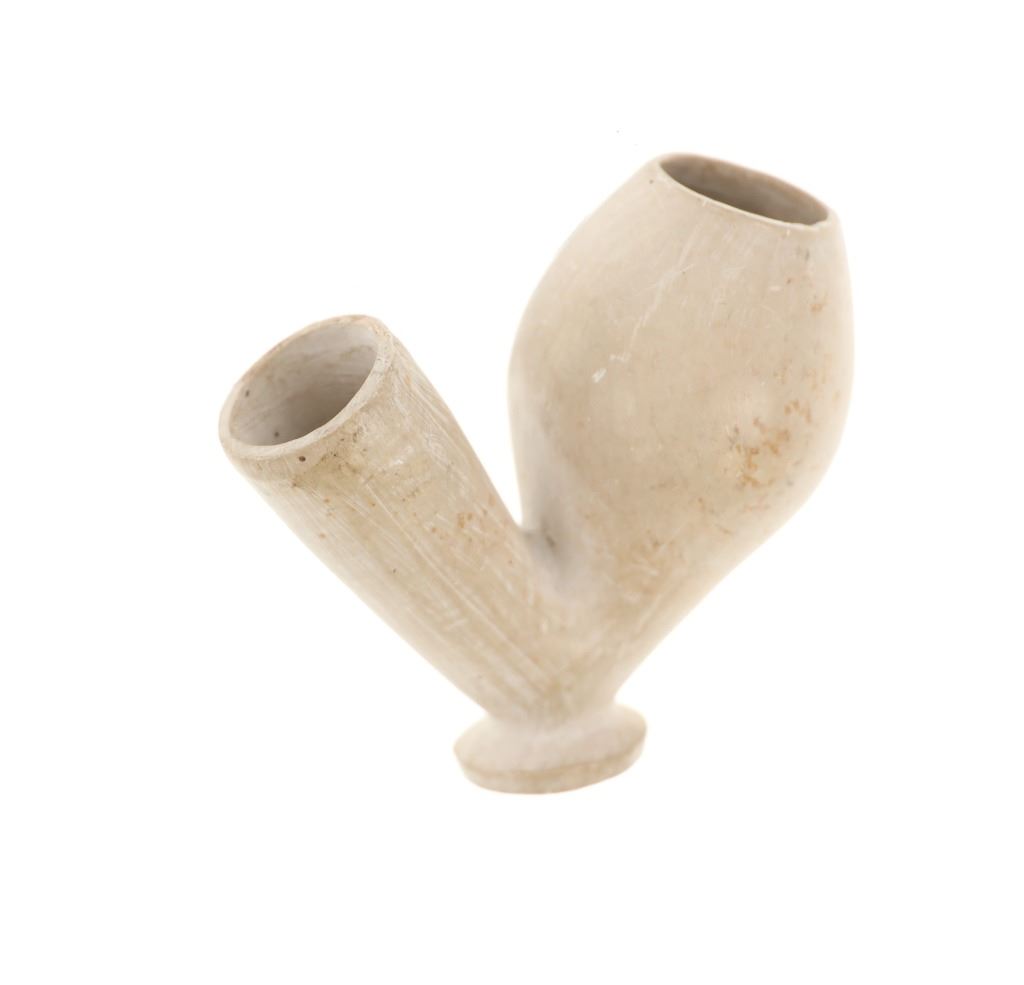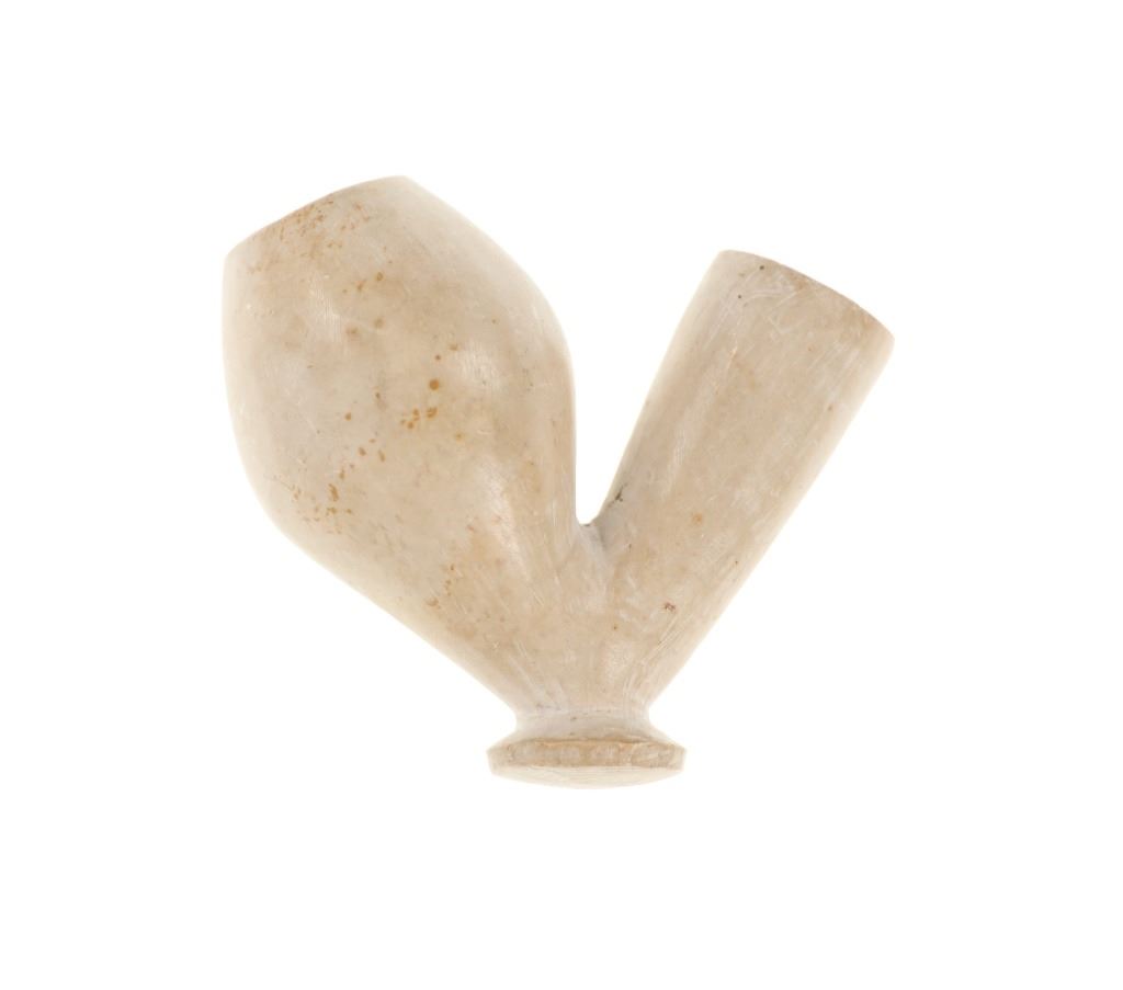Featured in this lot is this 2 3/4" Pre Columbian carved white soapstone pipe. The pipe features a wonderfully and professionally carved white soapstone construction that shows a bulging bowl with the acute angle leading to the shaft coupler. The condition of this Pre Columbian pipe is well preserved with no obvious signs of damage and shows good overall condition. The measurements of this pipe is 2 3/4" x 3" x 1 1/2". The collective weight of this pipe is U4oz.