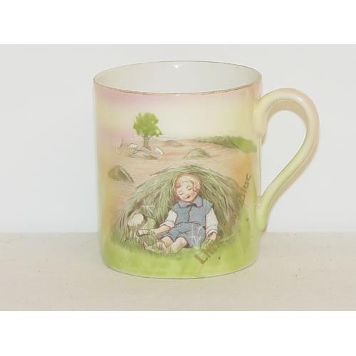 2 3/4" ROYAL BAYREUTH HANDLED MUG "LITTLE BOY BLUE" W/ BLUE STAMP MARK - WEAR