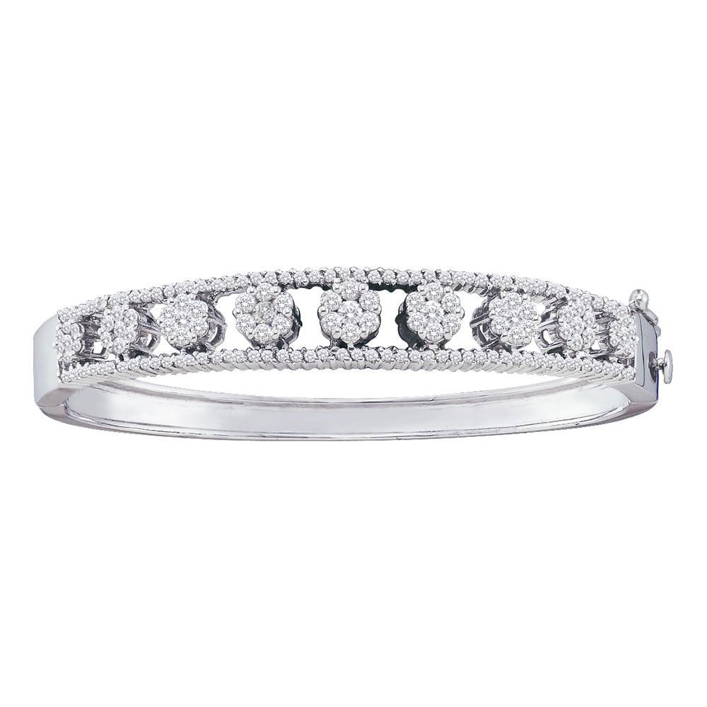 14kt White Gold Womens Round Diamond Bangle Flower Cluster Bracelet 2-3/8 Cttw