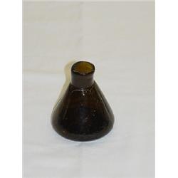 2 3/8" STODDARD CONE INK, OLIVE AMBER W/ X ON BASE & OPEN PONTIL