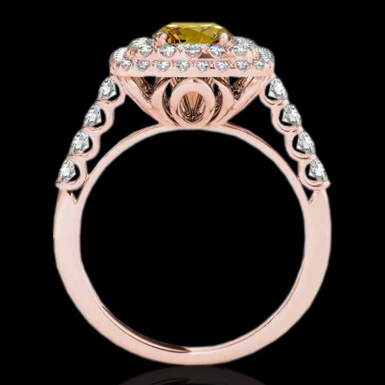 2.3 CTW Certified Si Fancy Intense Yellow Diamond Solitaire Halo Ring 10K Rose Gold ---- Luxury Designer Brand Ring Appraised Retail Price at $15,400 ---- SKU Number US34602 10k Rose gold Ring Size is 7, Ring measuring approx. Uniform, weighing in total approx. 6.5 grams. Made in the USA and is stamped 10k, Main stone 1.25 carat total weight containing 1 pieces of Intense Fancy Yellow color with SI quality Round shape cut Diamond , Stone #2 1.05 carat total weight containing 52 pieces of H-I color with VS/SI quality Round shape cut