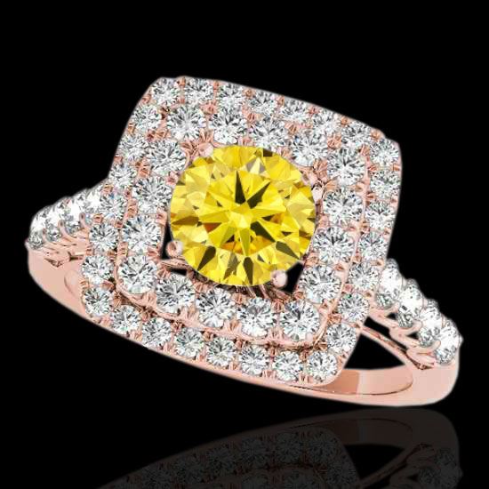 REF-254Y5K -34602 ---- 2.3 CTW Certified Si/I Fancy Intense Yellow Diamond Solitaire Halo Ring 10K Rose Gold ---- Luxury Designer Brand Ring Appraised at $15,400 Certificate Number US34602 10k Rose gold, Ring Size is 7, Ring measuring approx. Uniform, weighing in total approx. 6.5 grams. Made in the USA and is stamped 10k, Main stone 1.25 carat total weight containing 1 pieces of Intense Fancy Yellow color with SI quality Round shape cut Diamond , Stone #2 1.05 carat total weight containing 52 pieces of H-I color with VS/SI quality Round shape cut Diamond