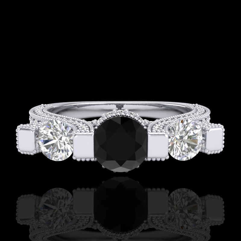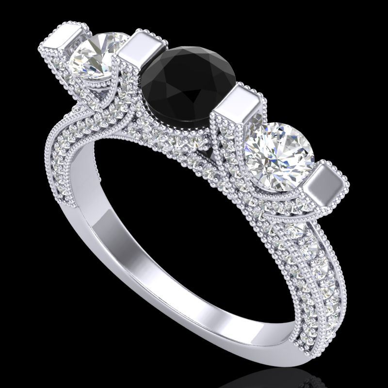 REF-200T2M -37639 ---- 2.3 CTW Fancy Black Diamond Solitaire Micro Pave 3 Stone Ring 18K White Gold ---- Luxury Designer Brand 3 stone ring Appraised at $12,100 Certificate Number US37639 18k White gold, 3 stone ring Size is 7, 3 stone ring measuring approx. Uniform, weighing in total approx. 8.5 grams. Made in the USA and is stamped 18k, Main stone 0.55 carat total weight containing 1 pieces of Black Opaque color with VS quality Round shape cut Diamond , Stone #2 0.5 carat total weight containing 2 pieces of H-I color with VS/SI quality Round shape cut Diamond , Stone #3 1.25 carat total weight containing 126 pieces of G-H color with VS/SI quality Round shape cut Diamond