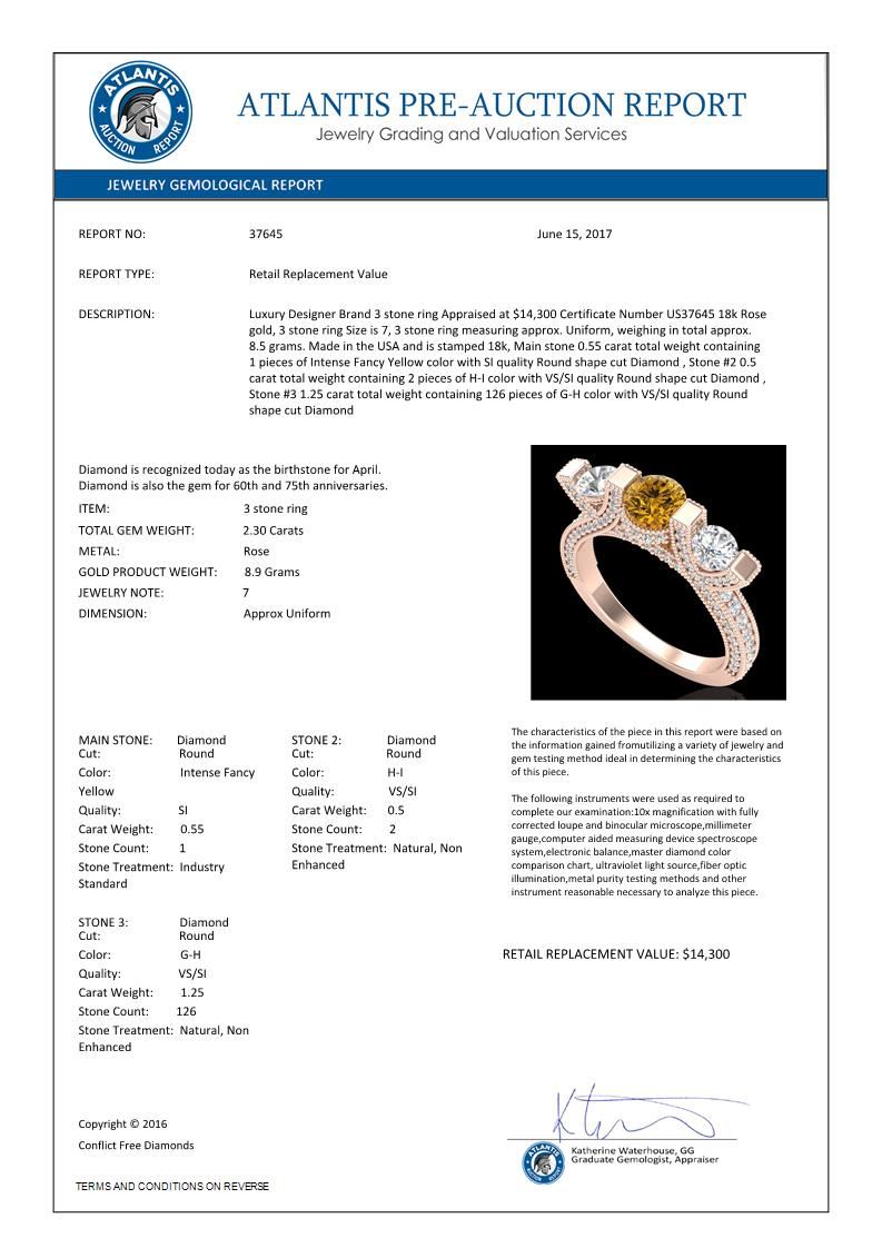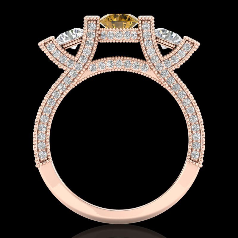 2.3 CTW Intense Fancy Yellow Diamond Micro Pave 3 Stone Ring 18K Rose Gold ---- Luxury Designer Brand 3 stone ring Appraised Retail Price at $14,300 ---- SKU Number US37645 18k Rose gold 3 stone ring Size is 7, 3 stone ring measuring approx. Uniform, weighing in total approx. 8.5 grams. Made in the USA and is stamped 18k, Main stone 0.55 carat total weight containing 1 pieces of Intense Fancy Yellow color with SI quality Round shape cut Diamond , Stone #2 0.5 carat total weight containing 2 pieces of H-I color with VS/SI quality Round shape cut