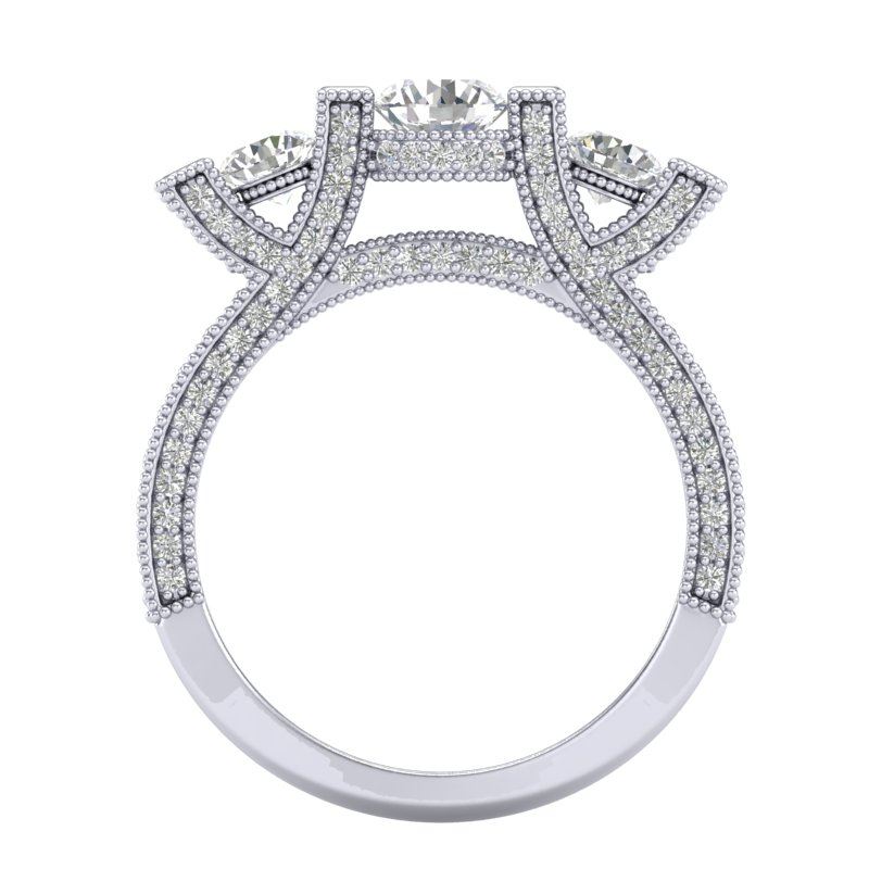 REF-263W6F -36956 ---- 2.3 CTW VS/SI Diamond Solitaire Micro Pave 3 Stone Ring Band 18K White Gold ---- Luxury Designer Brand 3 stone ring Appraised at $15,950 Certificate Number US36956 18k White gold, 3 stone ring Size is 7, 3 stone ring measuring approx. Uniform, weighing in total approx. 8.5 grams. Made in the USA and is stamped 18k, Main stone 0.55 carat total weight containing 1 pieces of H-J color with VS/SI quality Round shape cut Diamond , Stone #2 0.5 carat total weight containing 2 pieces of H-I color with VS/SI quality Round shape cut Diamond , Stone #3 1.25 carat total weight containing 126 pieces of G-H color with VS/SI quality Round shape cut Diamond