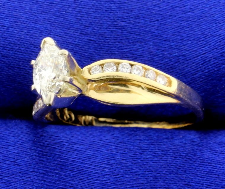 In 14k Gold. Lovely 1/2 carat high quality diamond Marquise ring that measures 8.5mm x 4.5mm, SI1 clarity and I color. Set in the band are 12 full cut high quality diamonds that weigh a total of 0.16 carats, SI clarity and H-I color. Size 7 3.3g