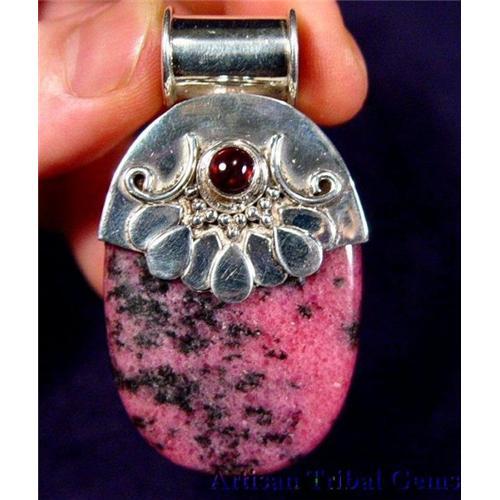 <tr><td>Title:2.3" Mughal Sterling Rhodonite Pendant~40</td></tr>
