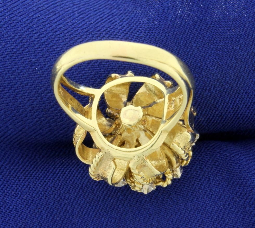 In 14k yellow gold. Contains one high quality .25ct diamond surrounded by eight .05ct high quality diamonds, all SI clarity/G color. Size 6 1/2. 12.1g.
