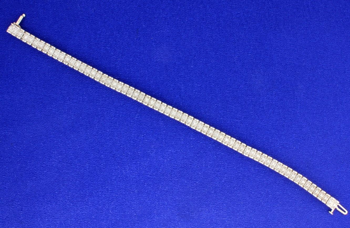 In 14k white gold this 5mm bracelet has 2/3cts TW of diamonds. I1 clarity/I color. It is 7 1/2inches long. 12.3g