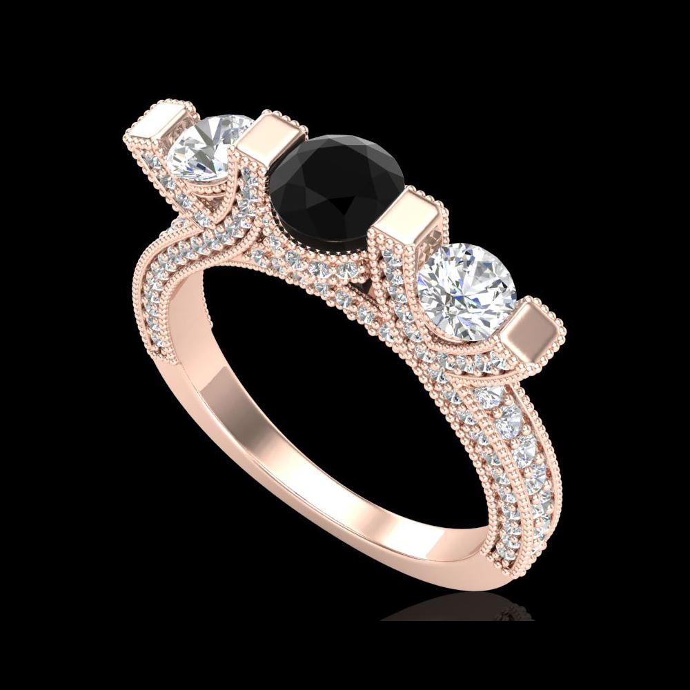 2.3 ctw Fancy Black Diamond Micro Pave 3 Stone Ring 18K Rose Gold