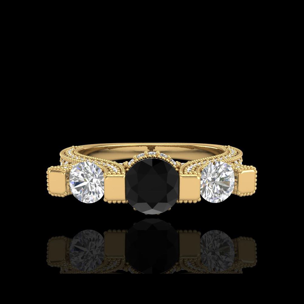 2.3 ctw Fancy Black Diamond Micro Pave 3 Stone Ring 18K Yellow Gold