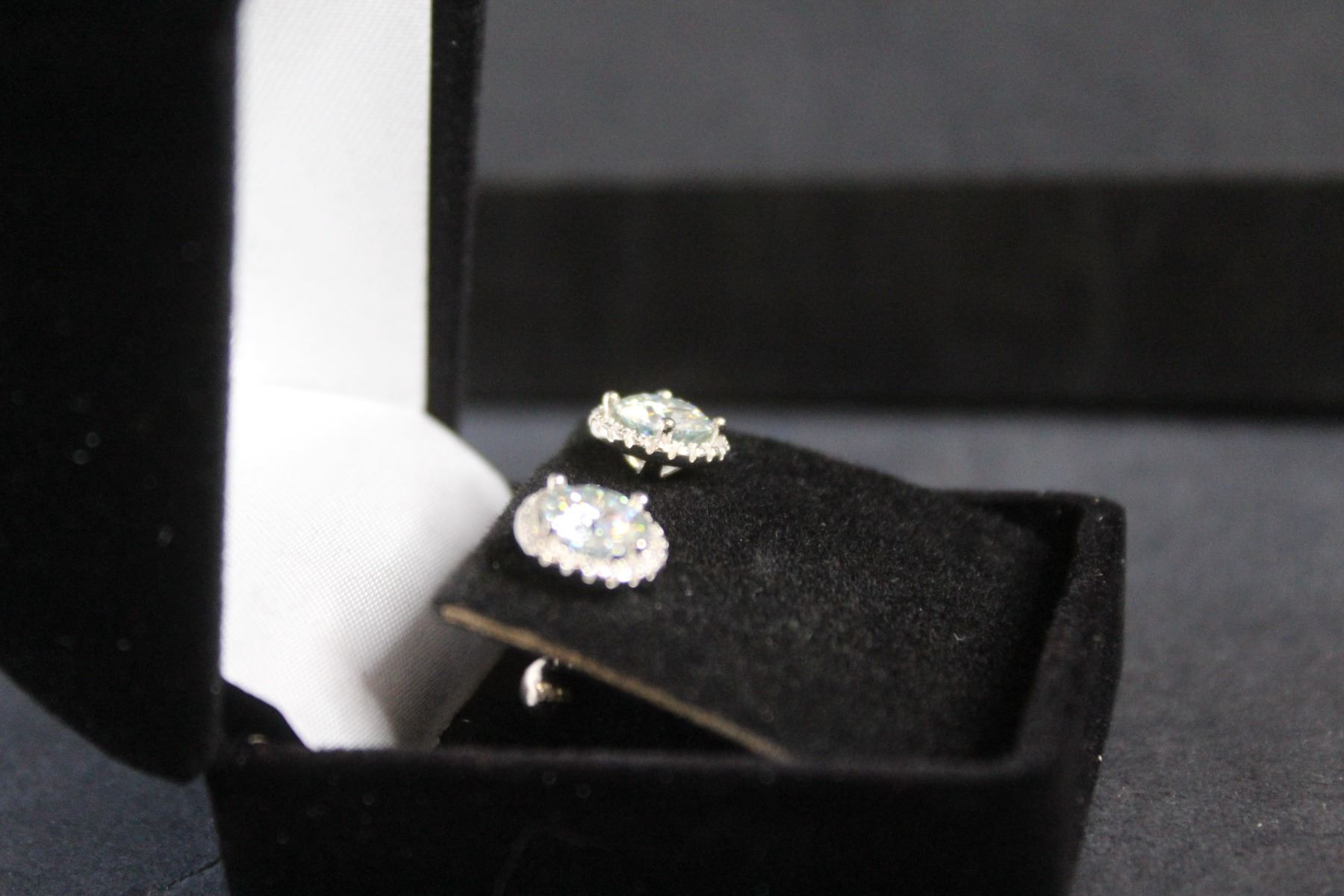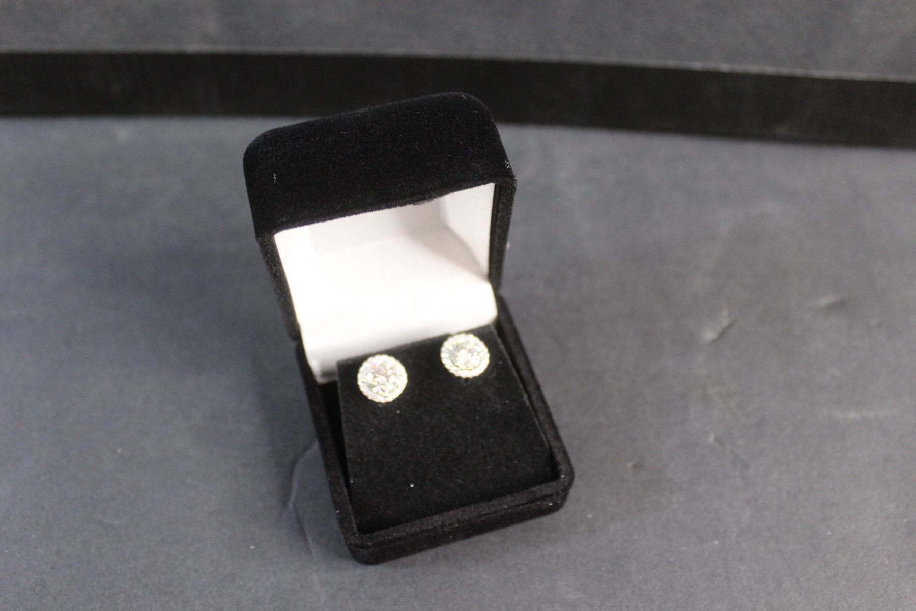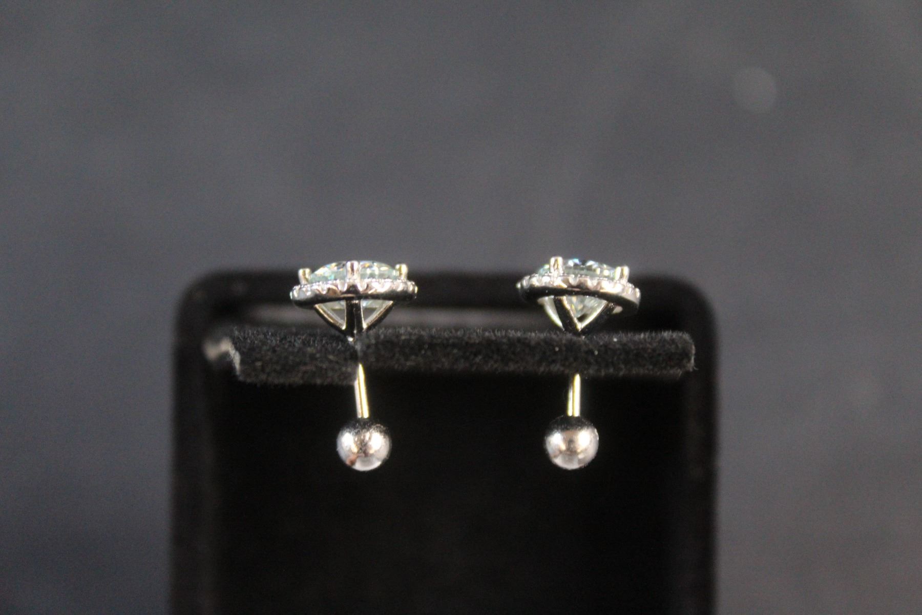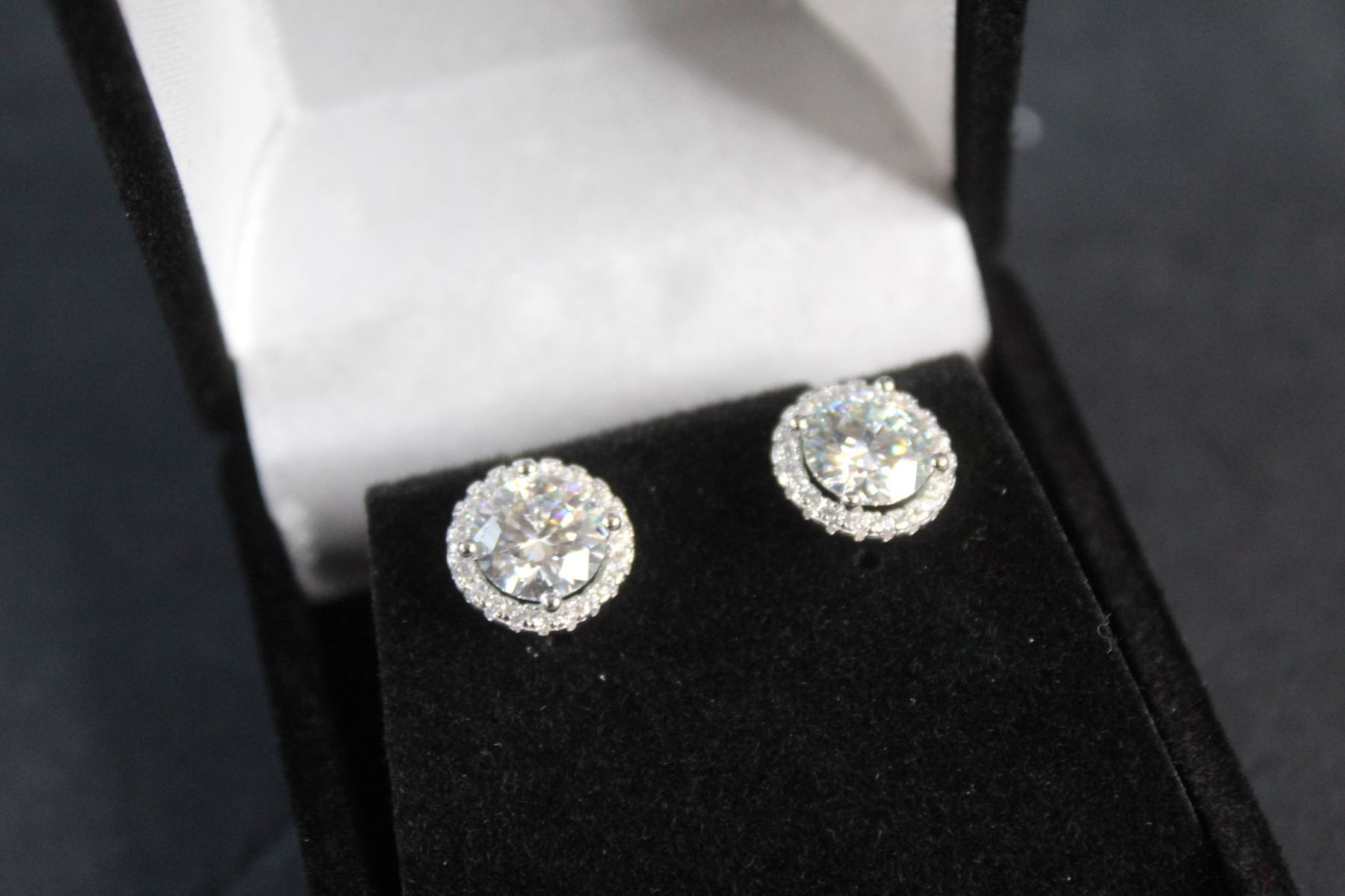 ^2.30 CT TW Round Brilliant Cut Moissanite VVS D Color Set in Center of Round Halo with 40 Round Cut Cubic Zirconium Weighing a Total 0.20 CT Set in 925 Silver Earrings with Screw Backs - Retail Value $1735