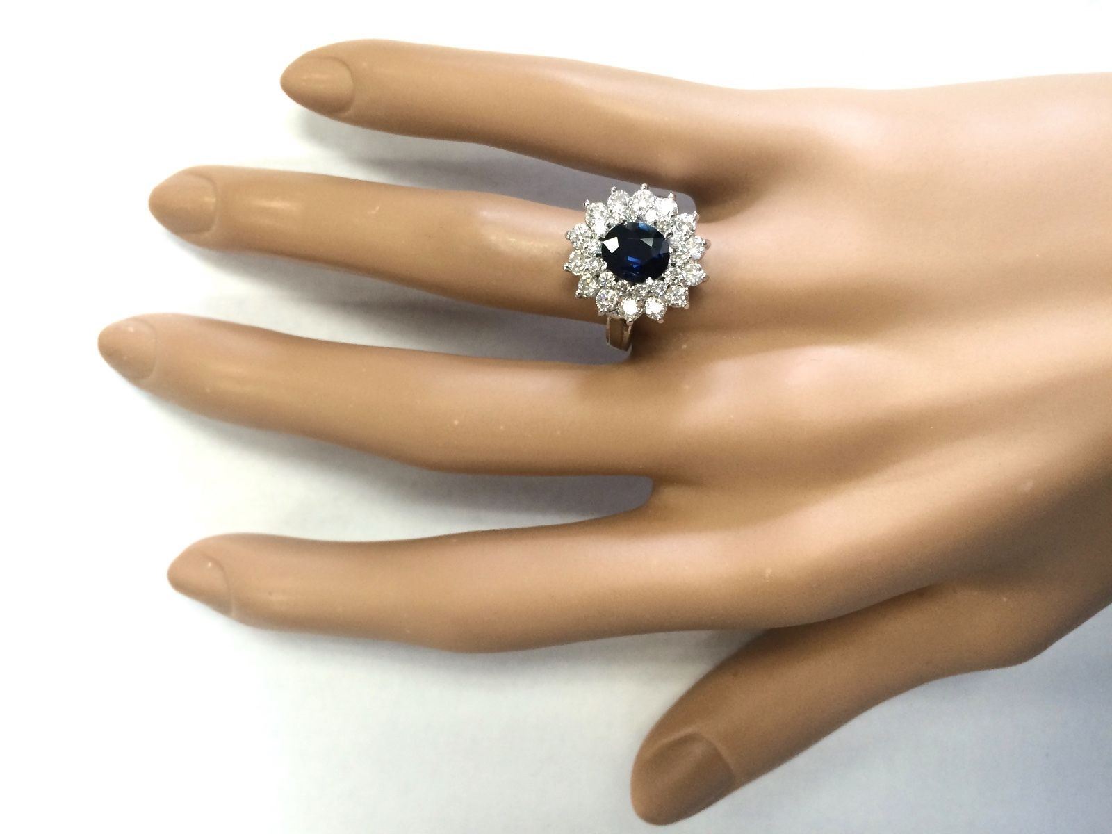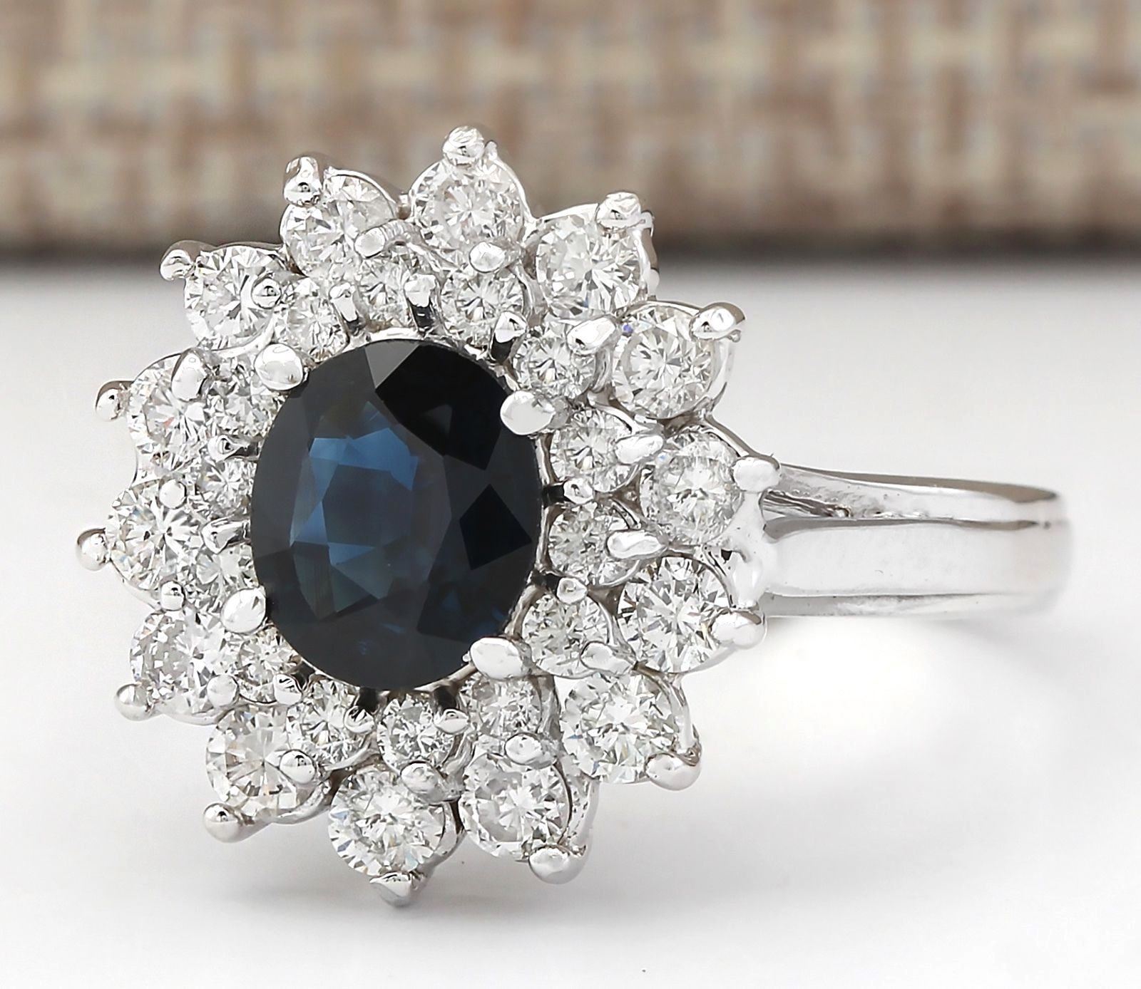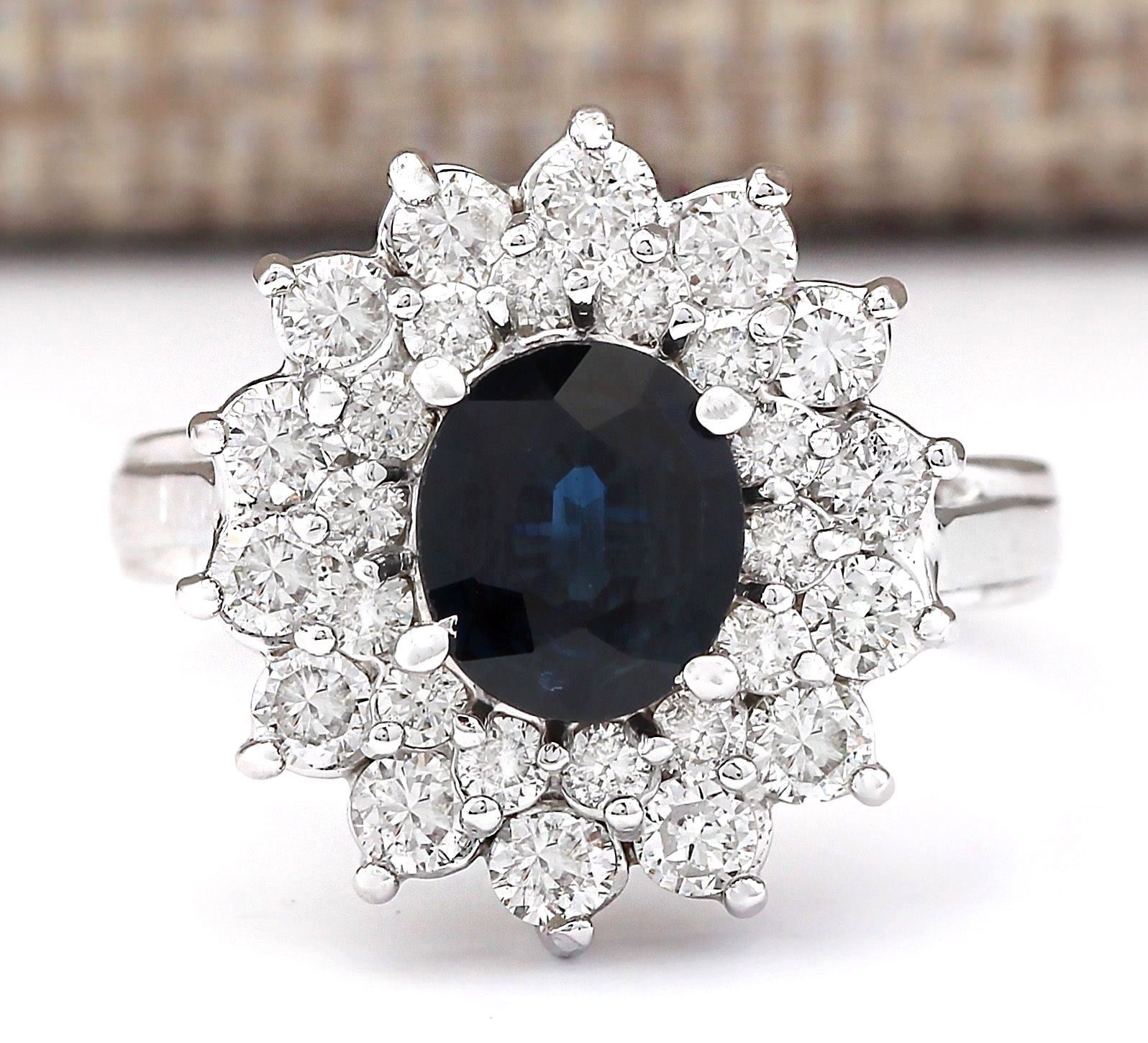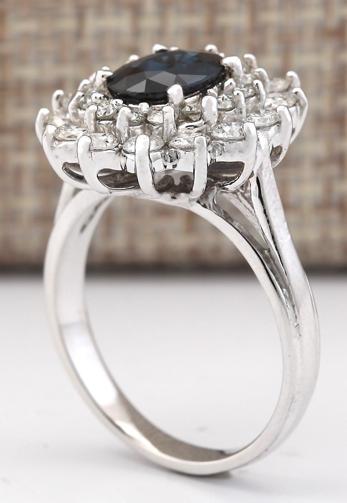 2.30 CTW Natural Blue Sapphire And Diamond Ring In 14k White Gold