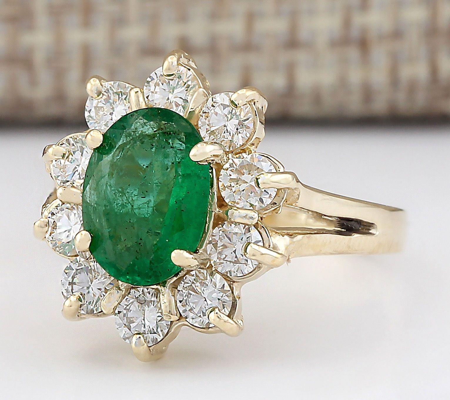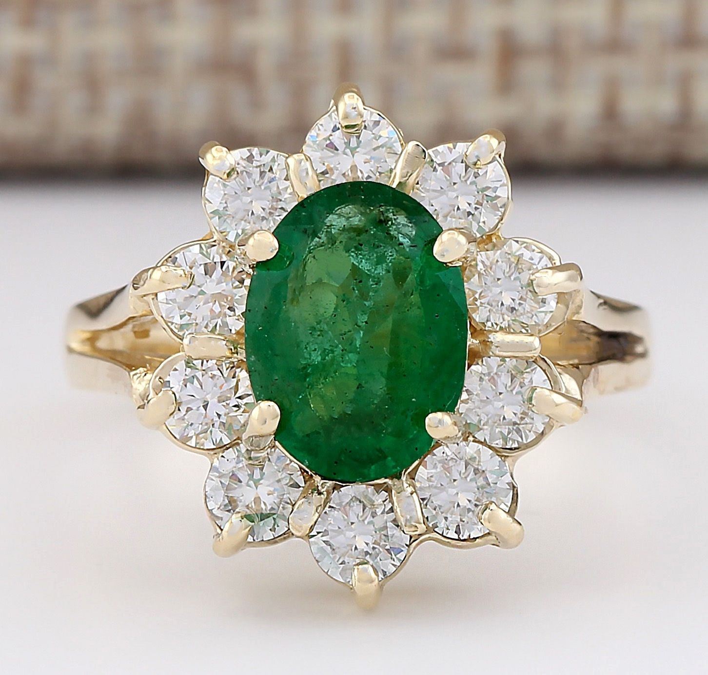 2.30 CTW Natural Emerald And Diamond Ring In 14k Yellow Gold