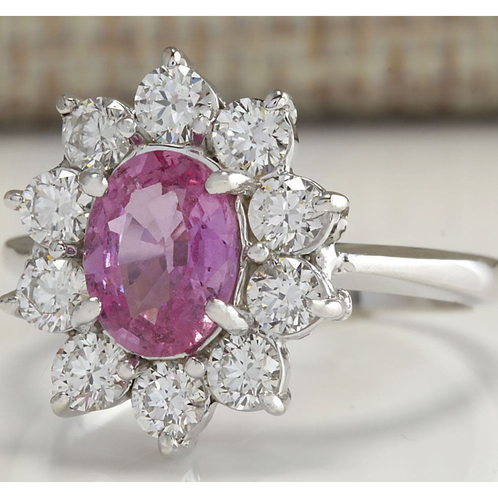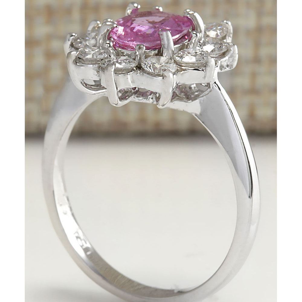 2.30 CTW Natural Pink Ceylon Sapphire Diamond Ring 14K Solid White Gold