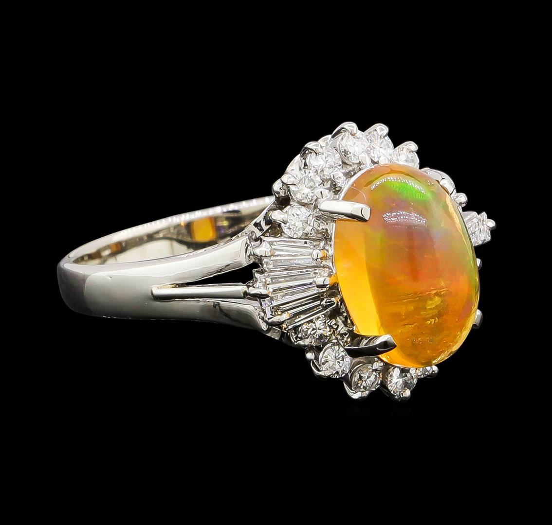 One ring featuring: Platinum containing Mexican Opal with a total weight of 2.30ct and Diamonds with a total weight of 0.43ct. Total Weight of Ring: 6 grams.