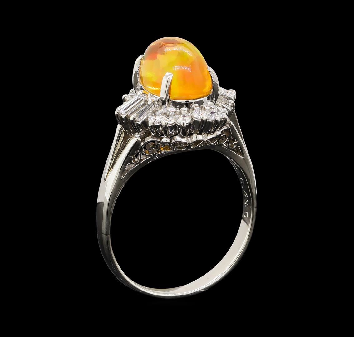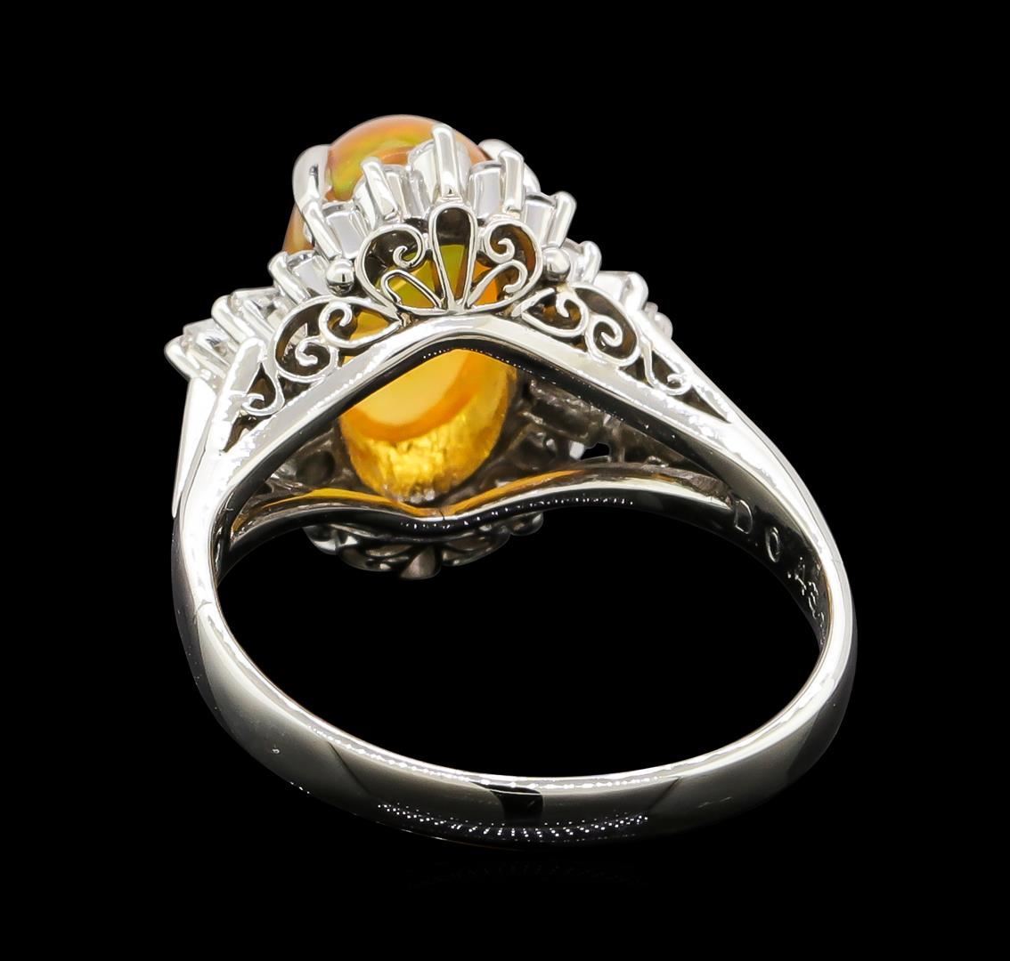 One ring featuring: Platinum containing Mexican Opal with a total weight of 2.30ct and Diamonds with a total weight of 0.43ct. Total Weight of Ring: 6 grams.