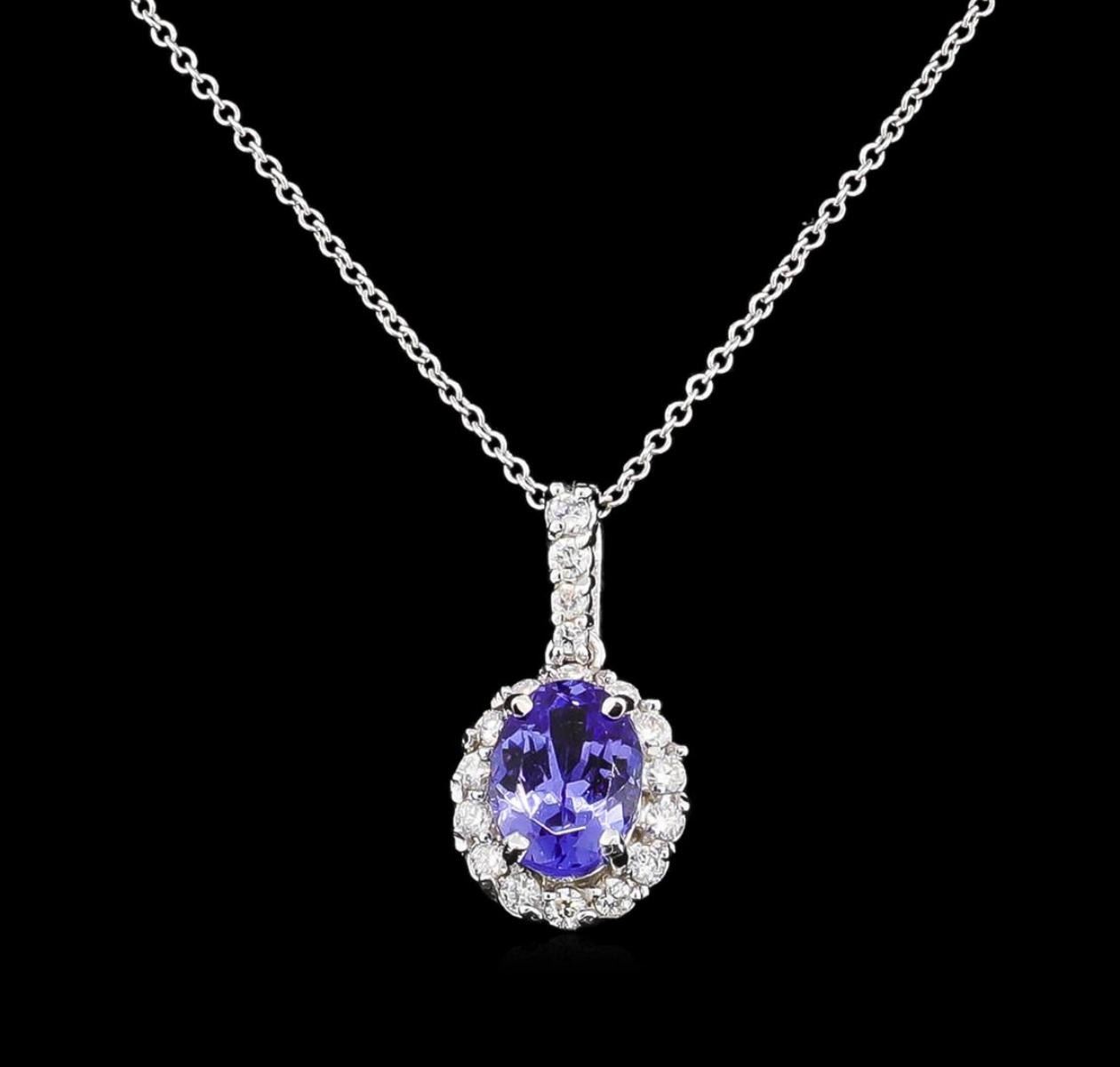One pendant with chain : 14KT white gold weighing 2.40gm containing one tanzanite stone with a total weight of 2.30ct. and diamonds weighing 0.45ctw.