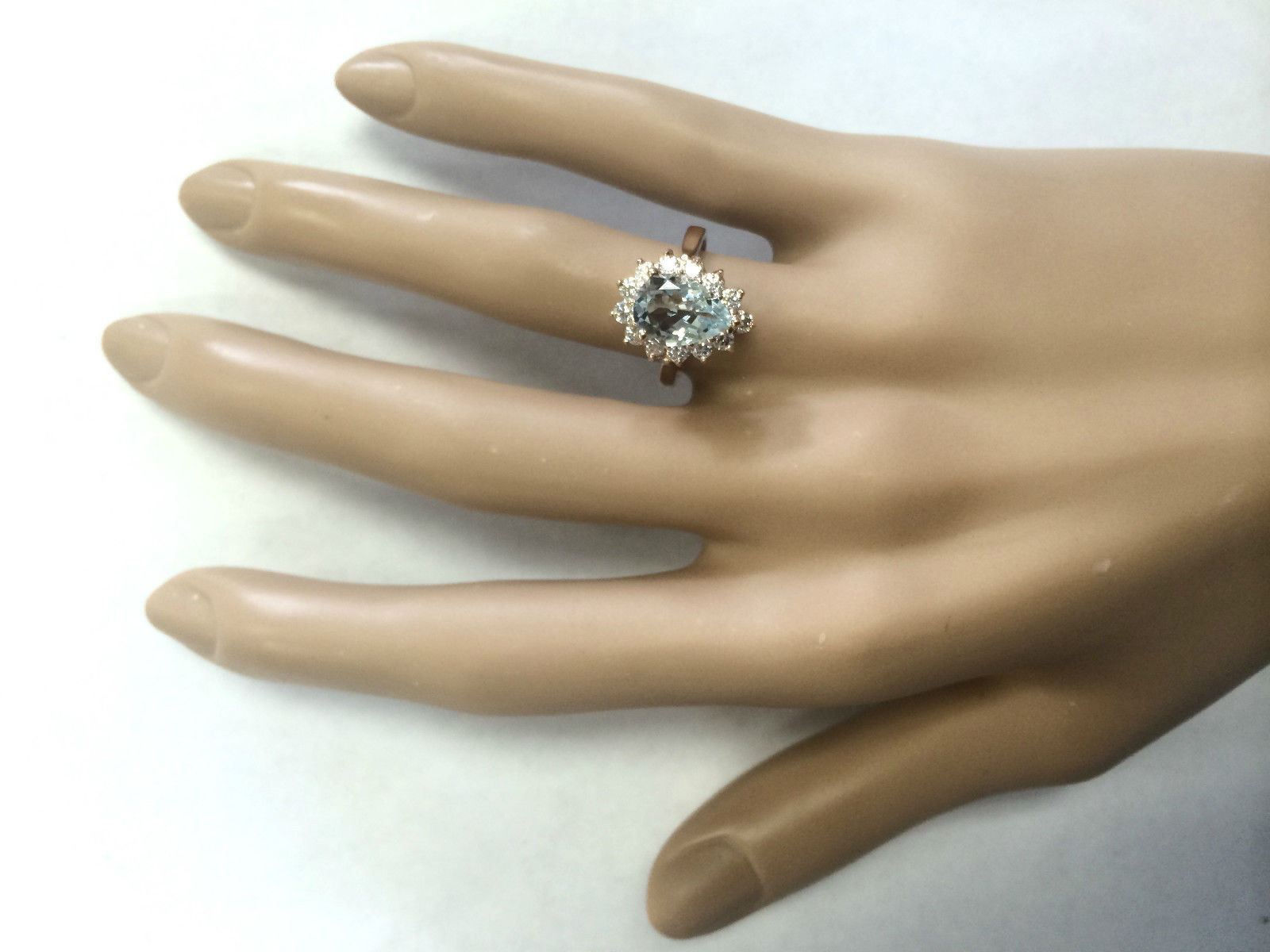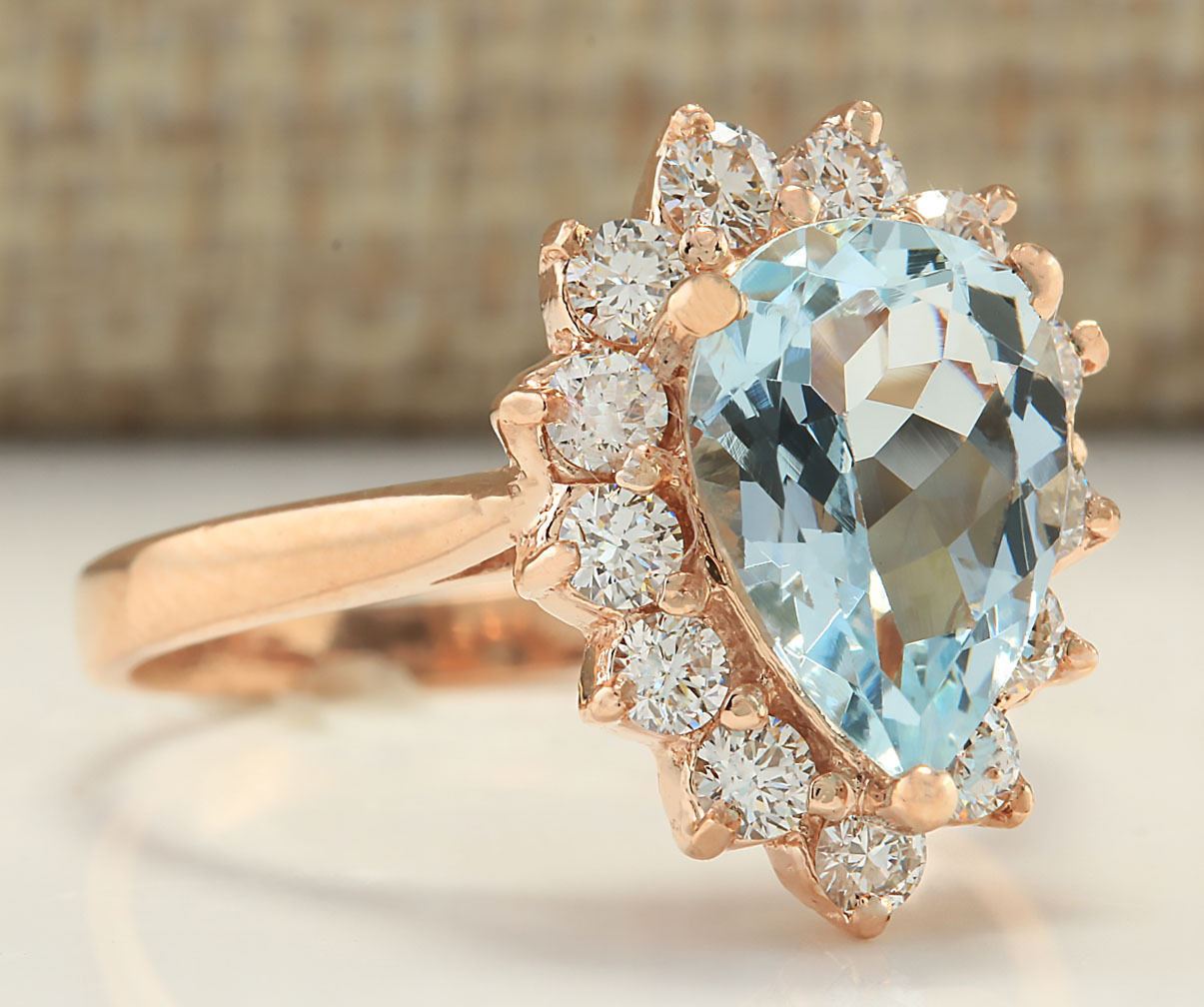 2.31 CTW Natural Aquamarine And Diamond Ring In 18K Solid Rose Gold