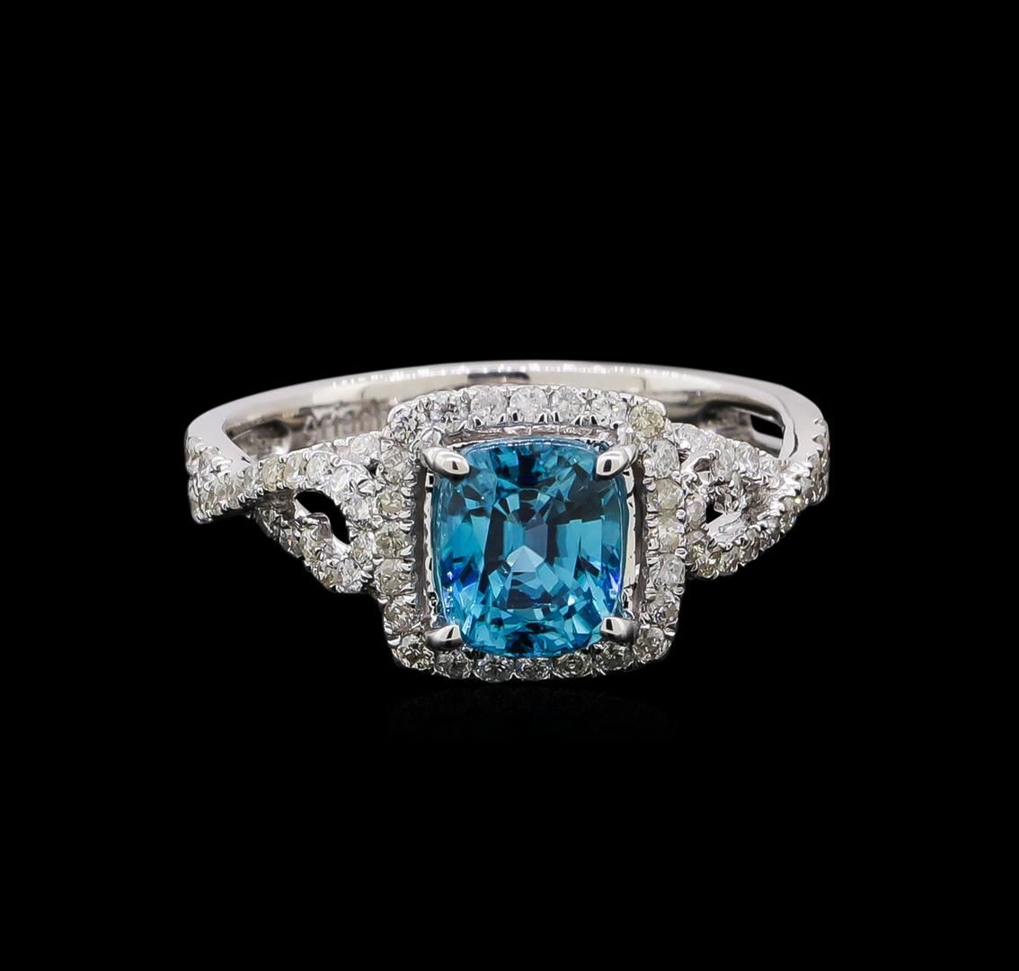 One ring : 14KT white gold weighing 2.8gm containing one blue zircon with a total weight of 2.31ct and diamonds weighing 0.55ctw.