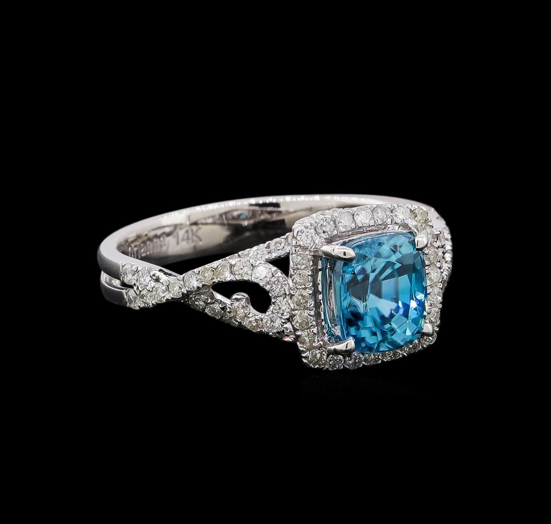 One ring : 14KT white gold weighing 2.8gm containing one blue zircon with a total weight of 2.31ct and diamonds weighing 0.55ctw.