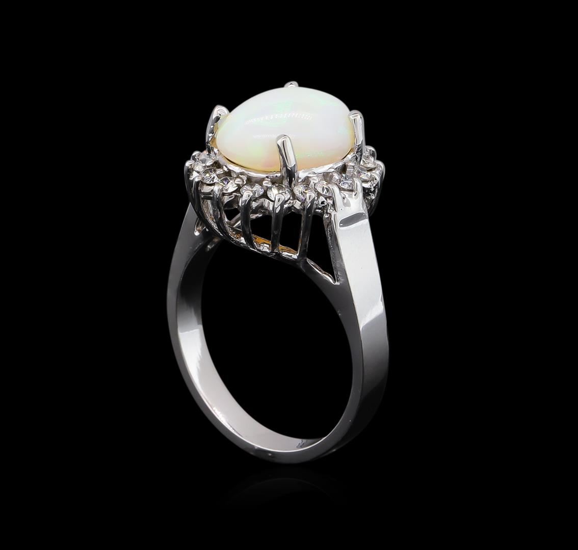 One ring featuring: 14KT white gold weighing 5.25 grams containing one opal with a total weight of 2.31ct and side diamonds with a total weight of 0.40ct.