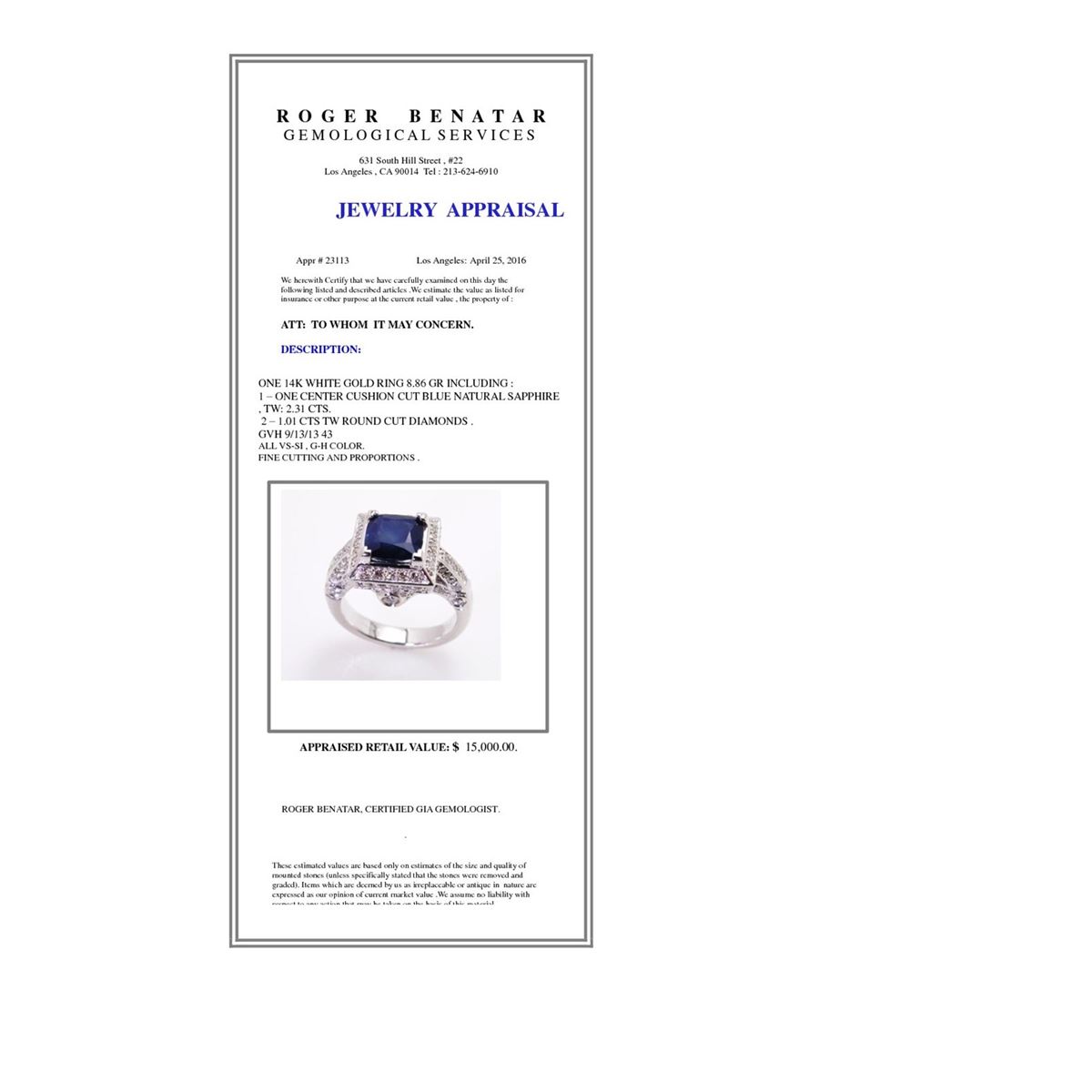 14K W/G NATURAL CEYLON BLUE SAPPHIRE RING:8.86CT/BLUE SAPPHIRE :2.31CT/ DIA :1.01CT/#GVR1336
