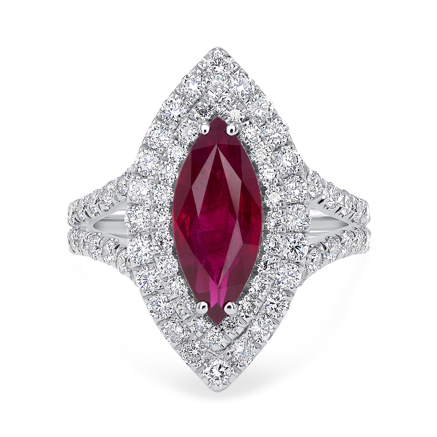 18K White Gold Ring 7.26gm / Diamond 1.33ct / NATURAL Ruby 2.31ct