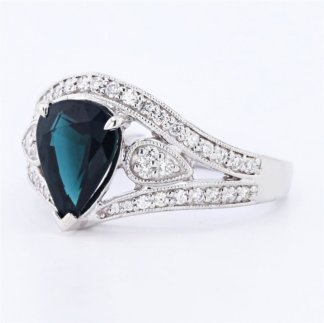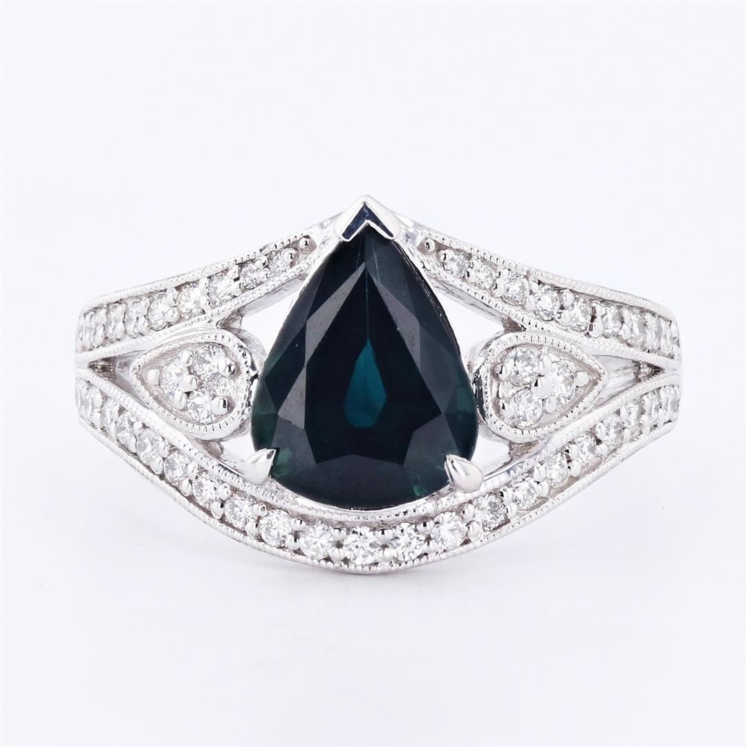 ONE PLATINUM LADY'S CUSTOM MADE DIAMOND and BLUE SAPPHIRE RING . 7.10 GR TW #1 - MINA CENTER GEMSTONE(S)# IDENTITY: ONE CENTER NATURAL BLUE SAPPHIRE SET IN PRONGS SETTING STYLE CARAT WEIGHT: 2.32 CTS SHAPE and MEASUREMENT: PEAR SHAPE, APPROX 9.80 X 7.60MM
