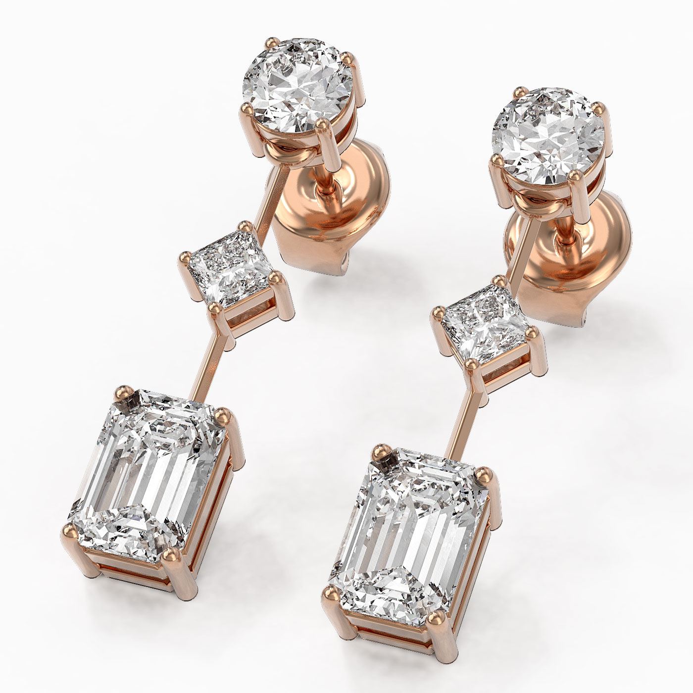 SKU: 48772 ---- 2.32 ctw Emerald Cut Diamond Designer Earrings 18K Rose Gold