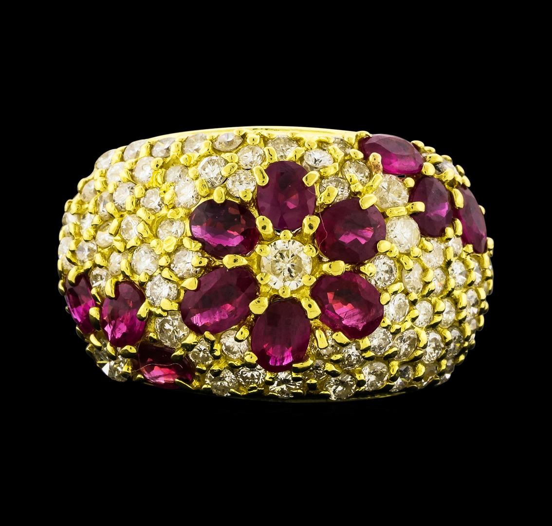 One ring featuring: 18KT Yellow Gold containing Ruby with a total weight of 2.32ct and Diamonds with a total weight of 1.80ct. Total Weight of Ring: 10.2 grams.
