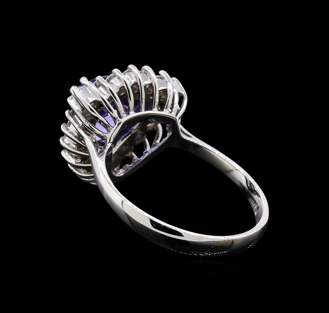One ring featuring: 14KT white gold weighing 3.62 grams containing one tanzanite with a total weight of 2.32ct and side diamonds with a total weight of 0.52ct.