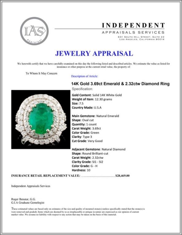Regarding Appraised Jewelry and Loose Stones - Auctionfarm sends them out to a third party for Retail Replacement Value Appraisals, which are the most common. These types of evaluations are written for insurance needs. This would be the cost to replace the jewelry with an item of equal quality and kind, considered to be the current market price or the replacement value. This type of appraisal is done to protect you in the event of damage or loss of a valuable item. Our appraisals are conducted by independent 3rd Party appraisal firms that utilizes Certified GIA Gemologist. Appraisals should be used for verification of gemstone and/or metal weight, size, and grade only, not actual value. Appraisal value should be considered for insurance purposes only, not actual value, as price varies greatly from retail locations thru out the world. Items should not be purchased with the expectation to resell for appraisal price, or for profit.