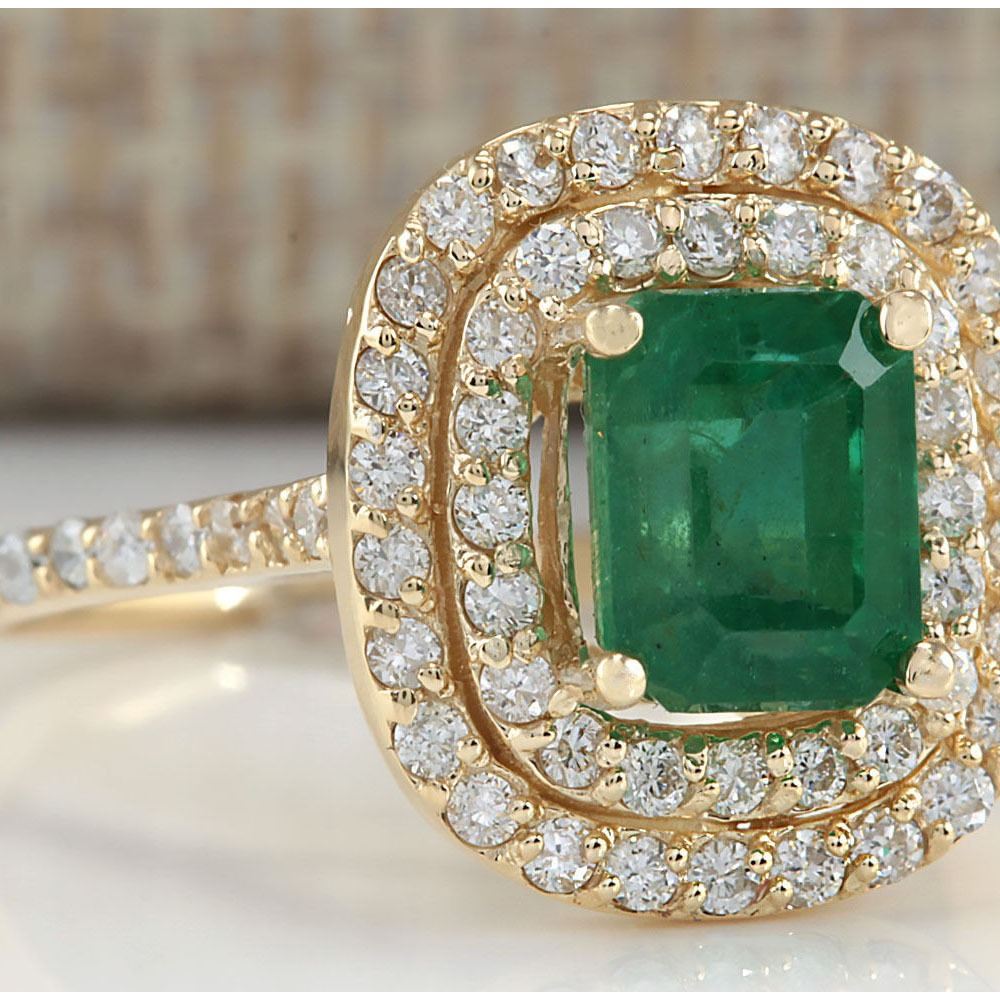 2.33 CTW Natural Emerald And Diamond Ring In 18K Yellow Gold
