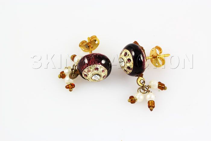 2.33GRAM INDIAN HANDMADE LAKH STUD FASHION EARRING **|**|** Weight(g): 2.33 ; Metal: SILVER PLATEDLAKH ; Length: .43 INCHES ; Shape: ROUND ; MSRP: $300