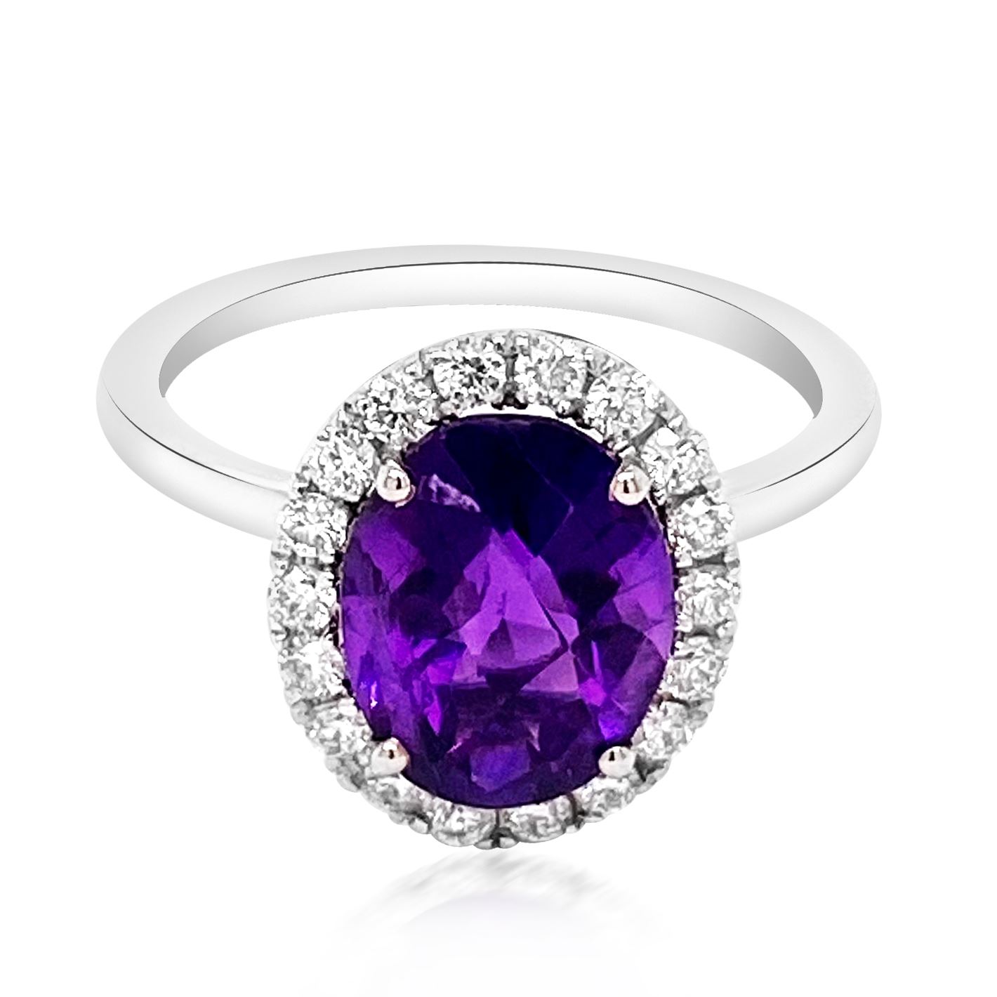 2.33ct Natural AMETHYST 14K White Gold 2.9gm Diamond 0.34ct Ring #PJ3640