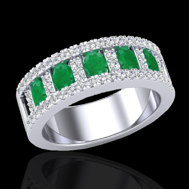 REF-67Y3K -20824 ---- 2.34 CTW Emerald & Micro Pave VS/SI Diamond Designer Ring 10K White Gold ---- Luxury Designer Brand Ring Appraised at $4,450 Certificate Number US20824 10k White gold, Ring Size is 7, Ring measuring approx. 3/8 " X1 ", weighing in total approx. 5 grams. Made in the USA and is stamped 10k, Main stone 1.7 carat total weight containing 5 pieces of Intense Green color with AAA quality Oval shape cut Emerald , Stone #2 0.64 carat total weight containing 50 pieces of H-I color with VS/SI quality Round shape cut Diamond