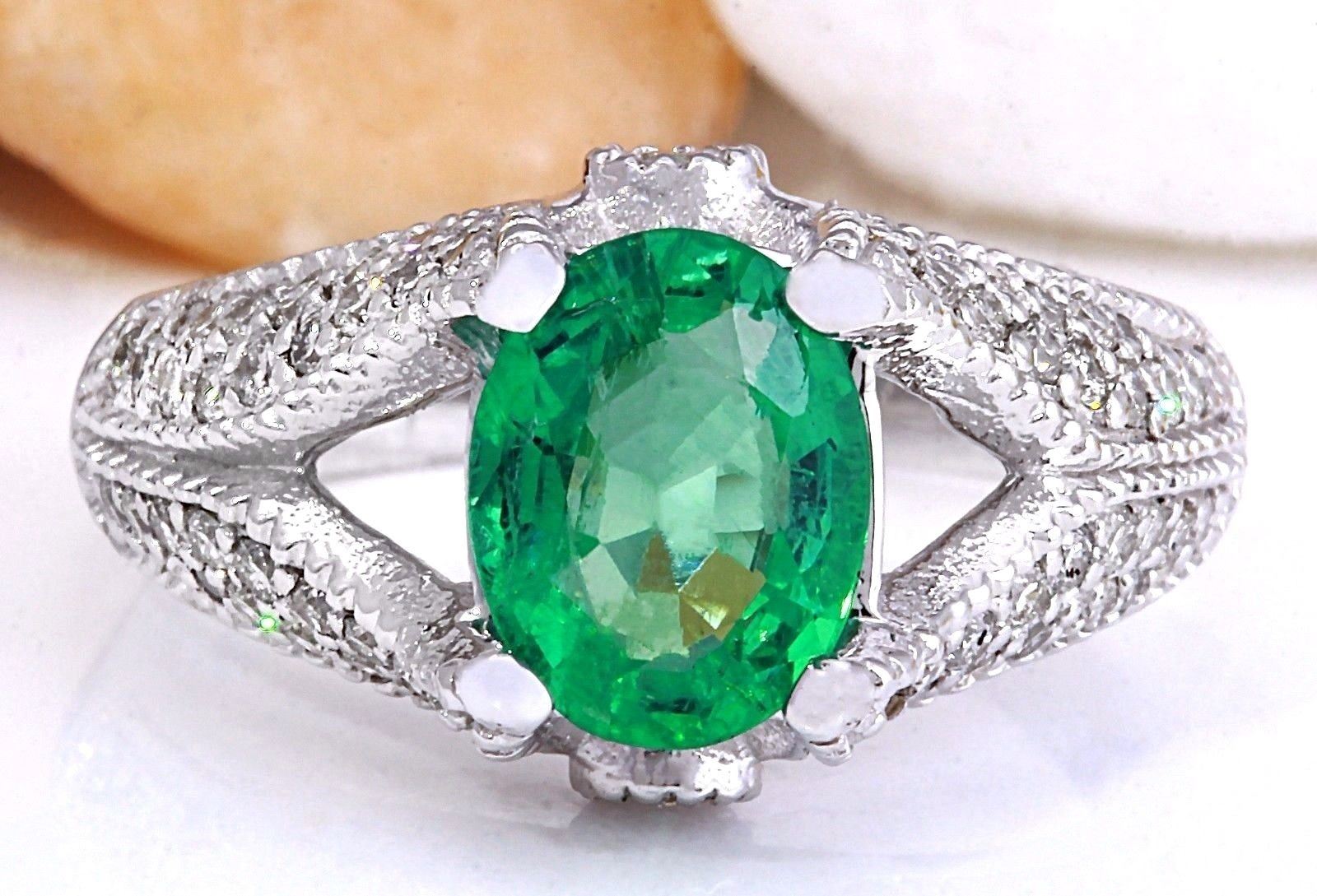 2.34 CTW Natural Emerald 14K Solid White Gold Diamond Ring