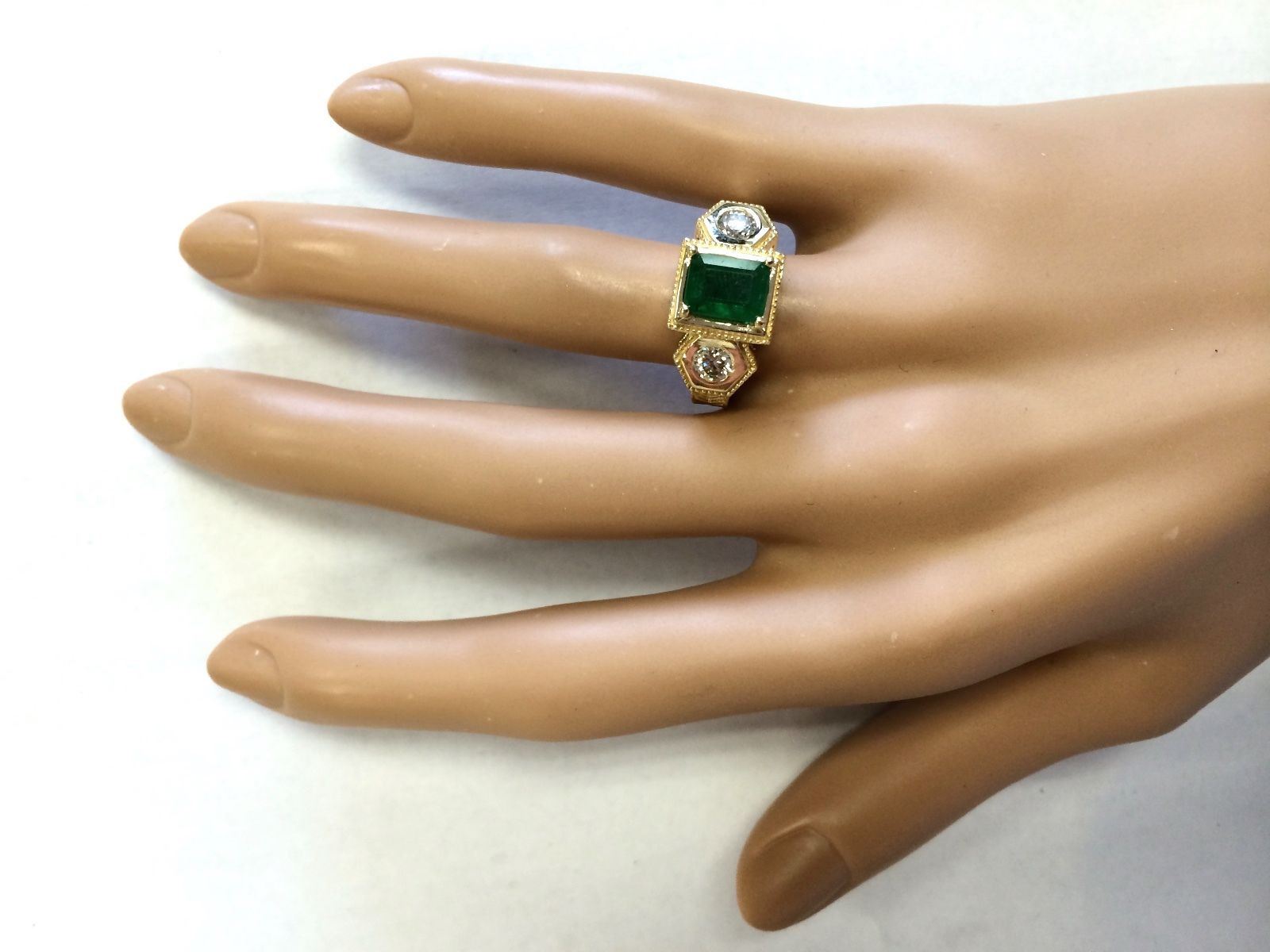 2.34 CTW Natural Emerald And Diamond Ring In 18K Yellow Gold
