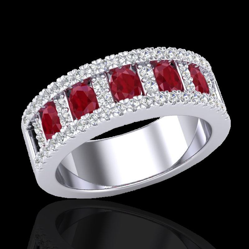 REF-67F3N -20826 ---- 2.34 CTW Ruby & Micro Pave VS/SI Diamond Designer Inspired Ring 10K White Gold ---- Luxury Designer Brand Ring Appraised at $4,800 Certificate Number US20826 10k White gold, Ring Size is 7, Ring measuring approx. 3/8 " X1 ", weighing in total approx. 5 grams. Made in the USA and is stamped 10k, Main stone 1.7 carat total weight containing 5 pieces of Mid-Opaque-Deep Red color with AAA quality Oval shape cut Ruby , Stone #2 0.64 carat total weight containing 50 pieces of H-I color with VS/SI quality Round shape cut Diamond