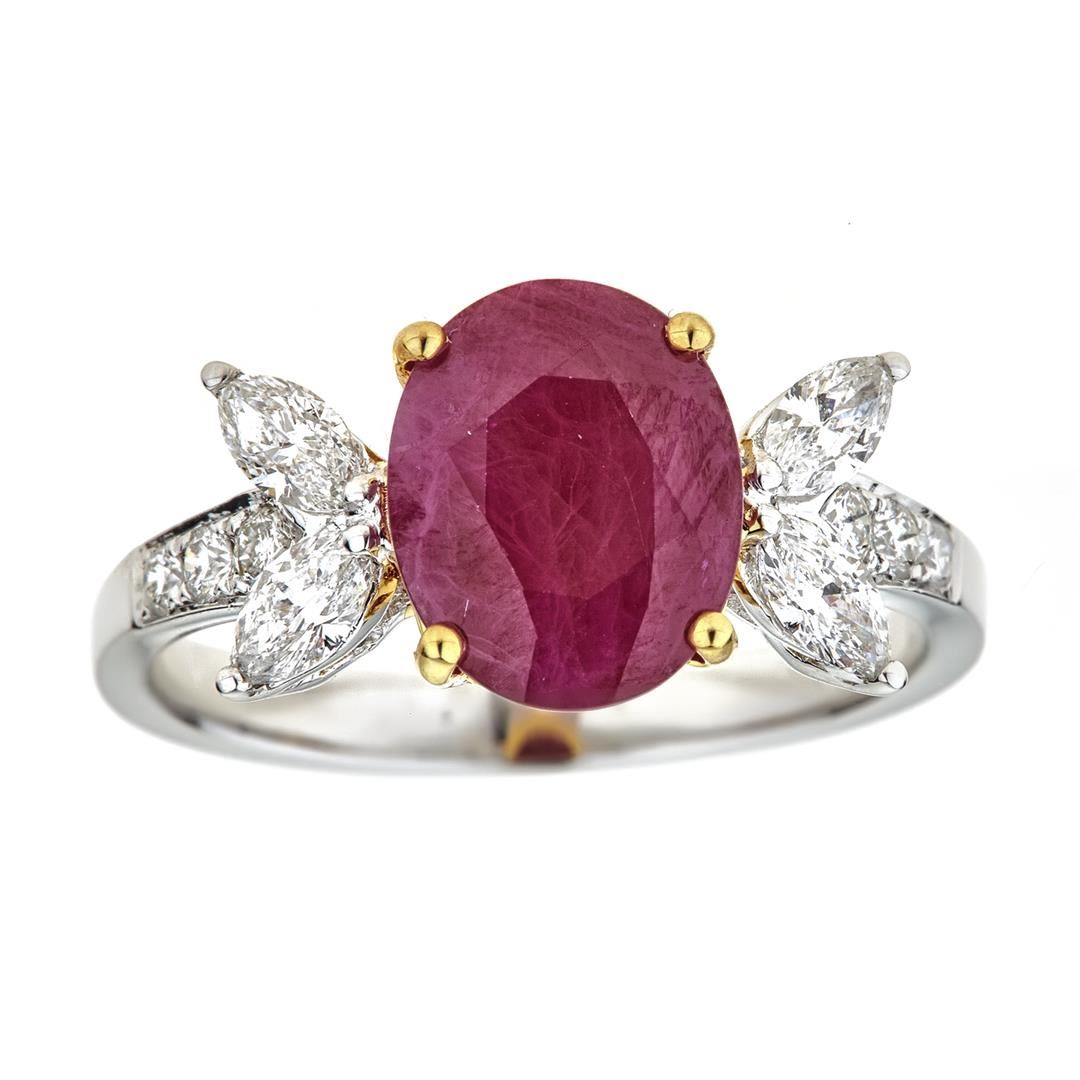 One lady's ring featuring: 18KT white and yellow gold weighing 3.25 grams containing one ruby weighing 2.34ct and diamonds weighing 0.52ctw.
