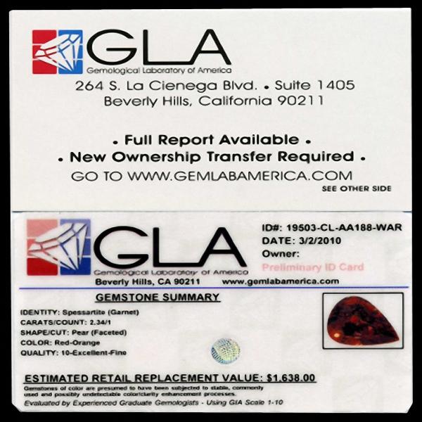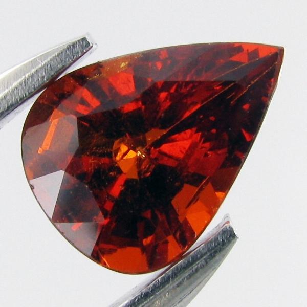Excellent clear red orange Nigerian specimen pear cut; lab quality evaluation 10; typical treatment likely; Gem Guide wholesale $527-$819; full retail appraisal $1638; full lab evaluation available