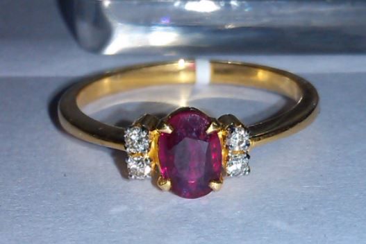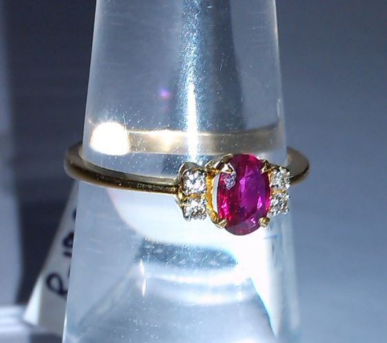 2.34g Ring made of 18kt Gold , 0.08 Ct Diamond and 0.48 Ct Ruby