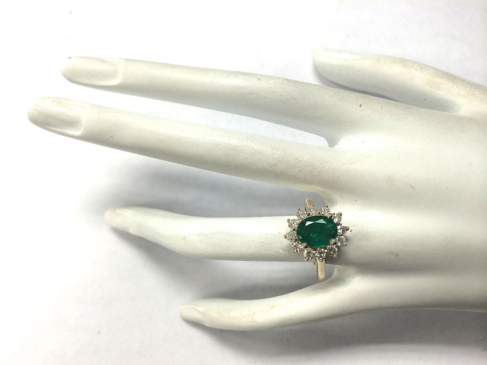 2.35 CTW Natural Emerald And Diamond Ring 14K Solid Yellow Gold