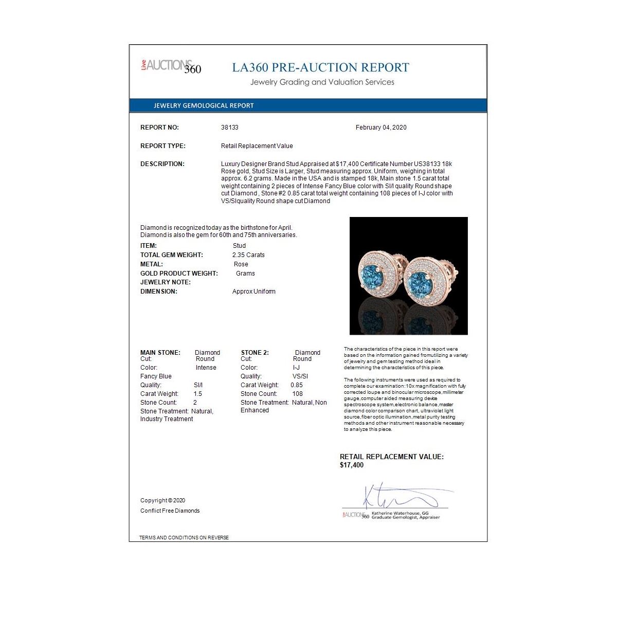 ALL LOTS ARE SOLD "AS IS" "WHERE IS". ALL SALES ARE FINAL. Bidders agree to pay a 19% buyer's premium added to the hammer price of the lot being auctioned. Condition reports and/or Gemological reports in Liquidation catalog are not guaranteed and may vary in accuracy. It is the responsibility of prospective bidders to inspect the goods. All reports, measurements, opinion of values, age and quality are offered not guaranteed. Neither the Liquidation house, nor the consignor, is responsible for the accuracy of printed or verbal descriptions or its authenticity. All jewelry items sold by Federal Government Liquidation are evaluated by third party appraisal firms where certified GIA gemologists evaluate the weight, size and grade of gemstone and/or metal to determine the replacement value of the item. Please be advised that all appraisals are done for insurance purposes only and do not determine the actual value of the jewelry on Liquidation. The appraisals are done for the sole purpose of protecting the buyer in the event of damage or loss of purchased jewelry items from Federal Government Liquidation. Federal Government Liquidation is not responsible for the opinions and appraisals of any third party appraisal firms and their experts.