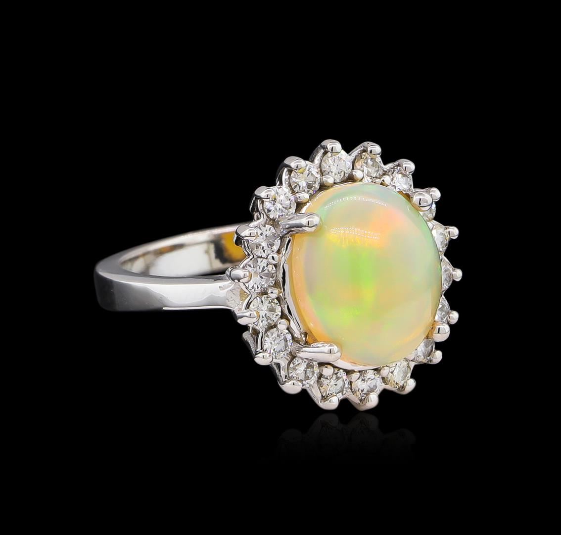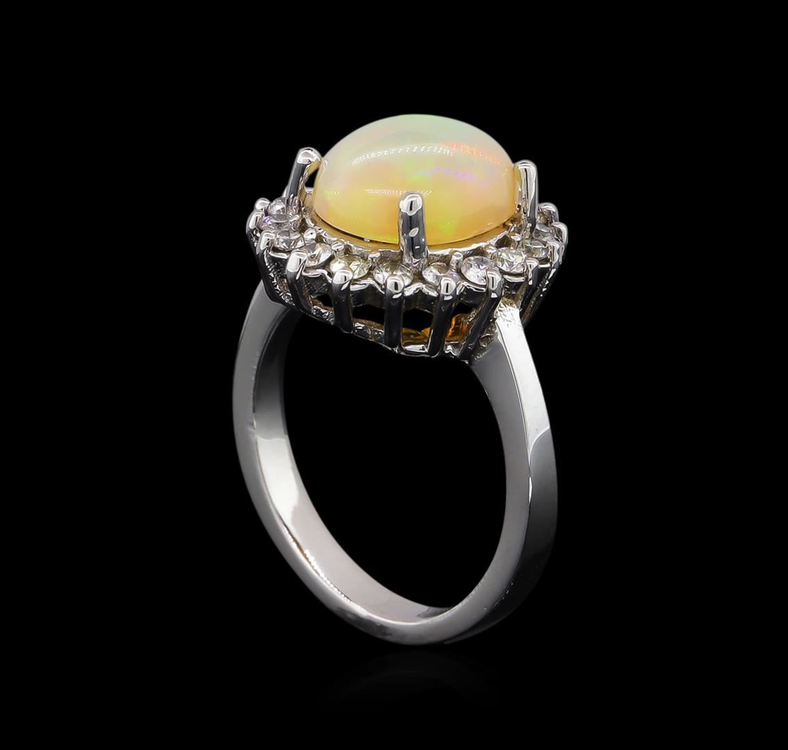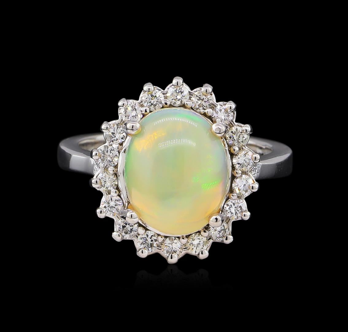 One ring featuring: 14KT white gold weighing 5.70 grams containing one opal with a total weight of 2.35ct and side diamonds with a total weight of 0.50ct.