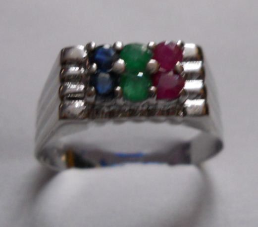2.350g Ring of Sapphire,Ruby and Emerald in silver