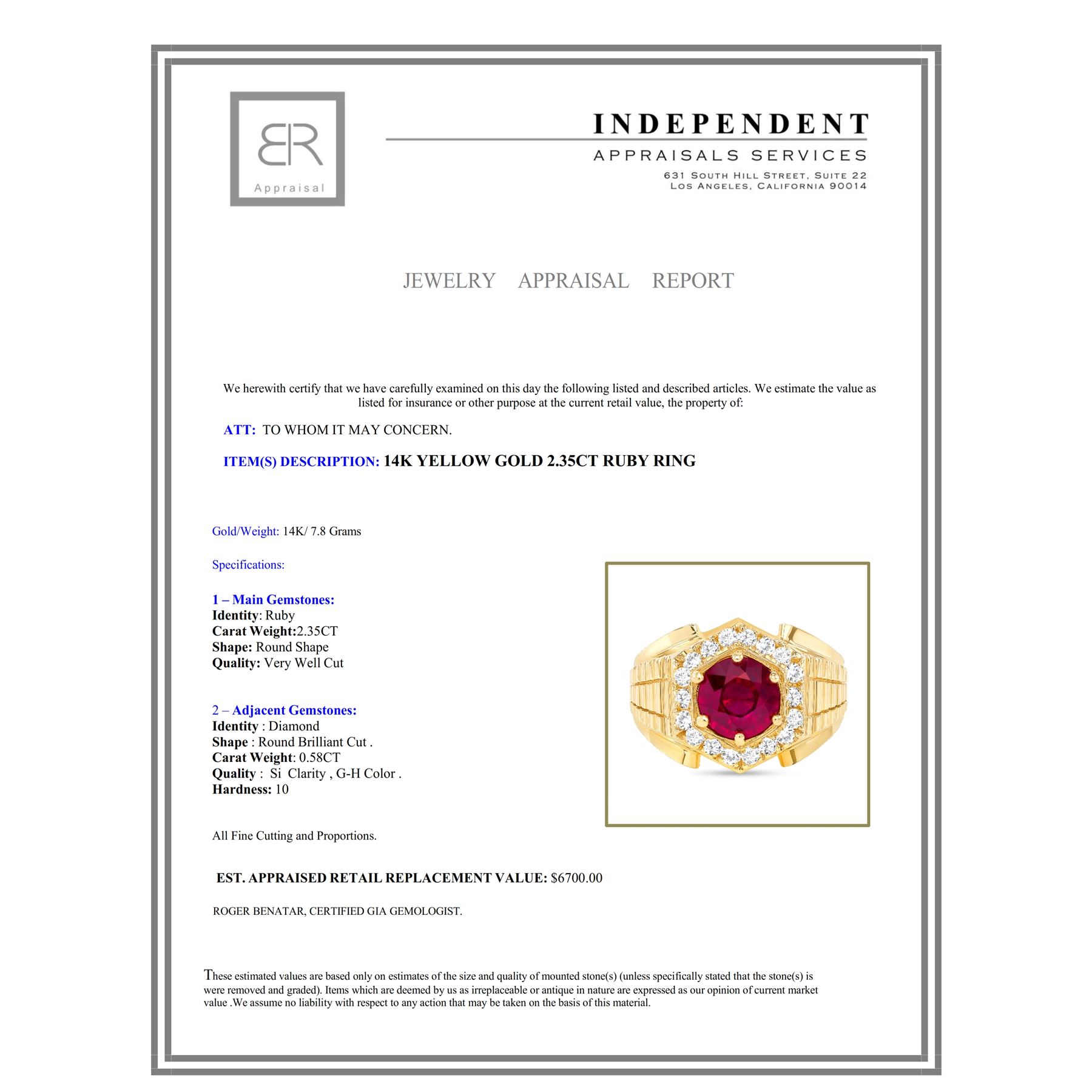 14k Yellow Gold : 7.8gm / Ruby : 2.35ct / Diamond : 0.58ct / #LRby75