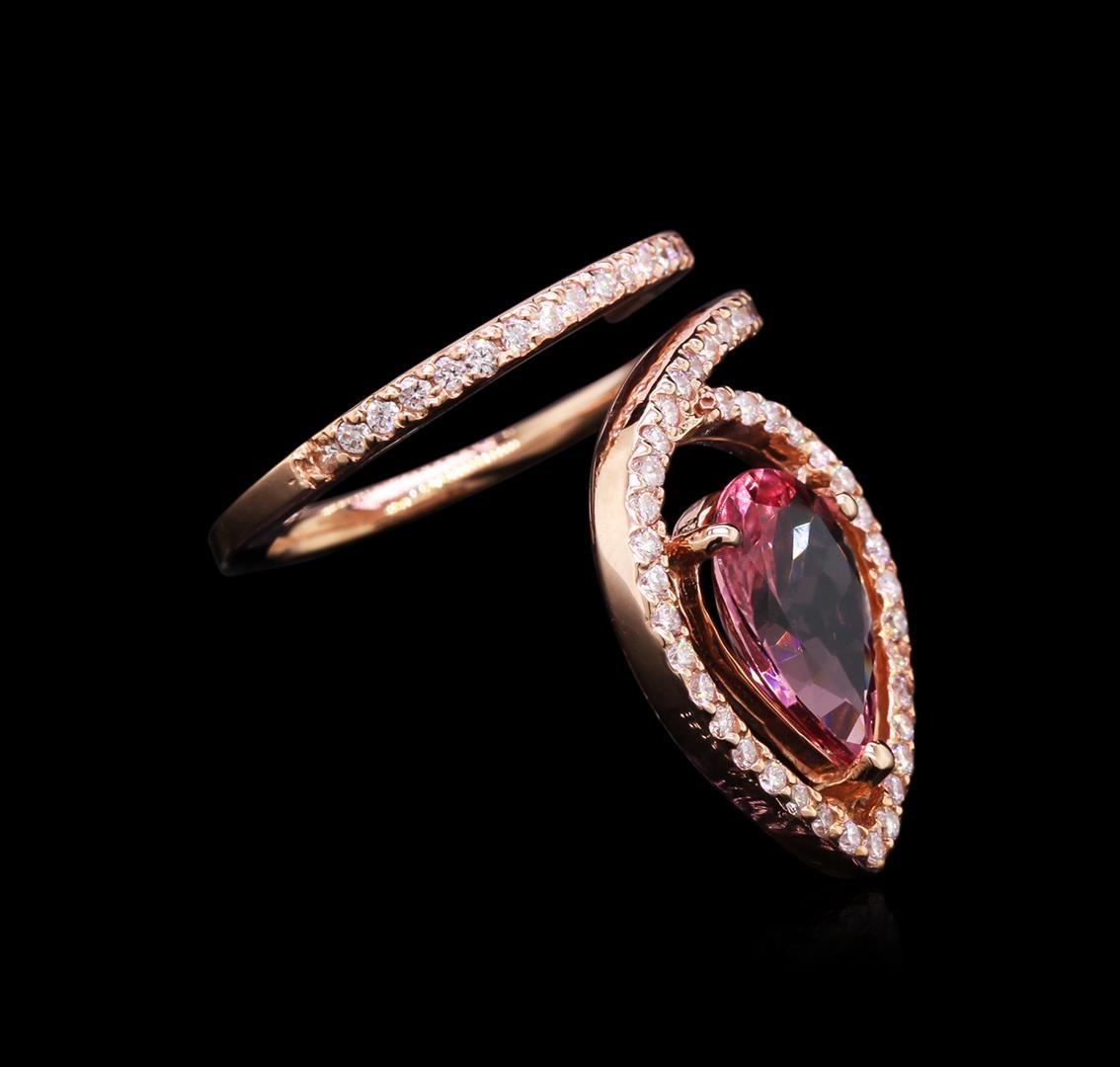 One ring featuring: 14KT rose gold weighing 6.26 grams containing one pink tourmaline with a total weight of 2.36ct and 68 diamonds with a total weight of 0.68ct.
