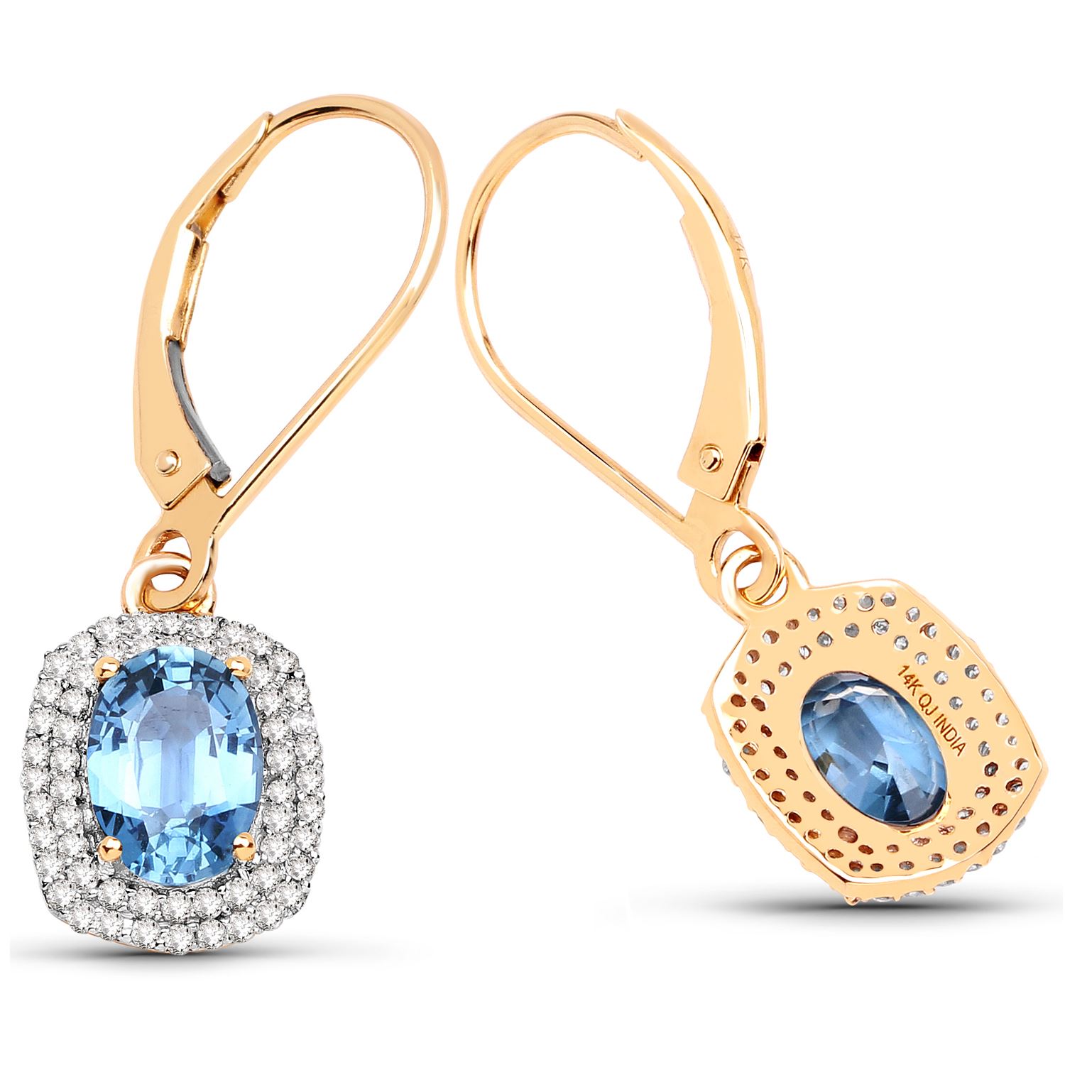 REF-73A8M ---- 2.36 ctw Sapphire Blue & Diamond Earrings 14K Yellow Gold